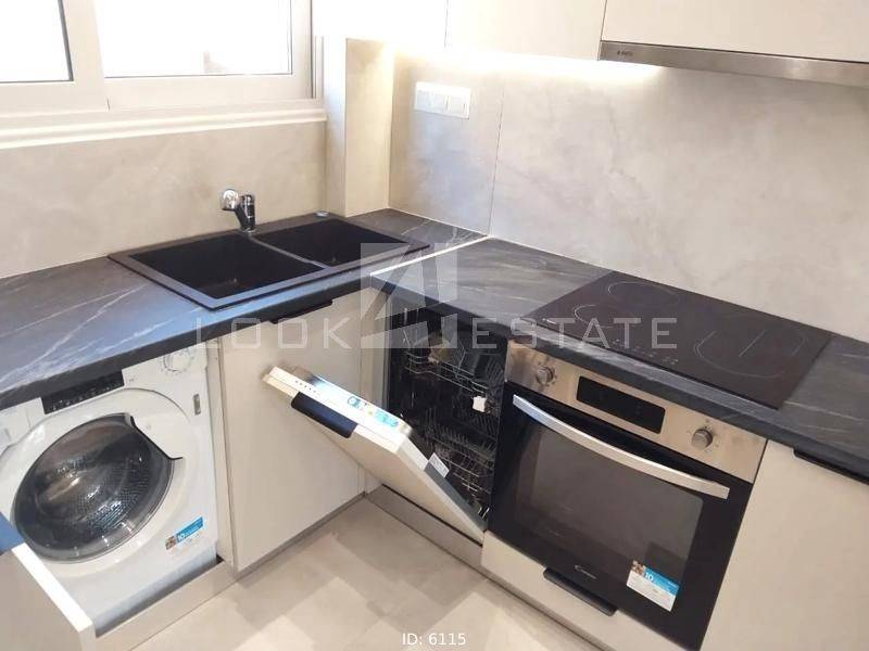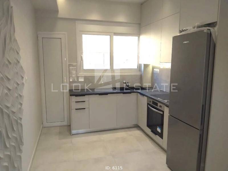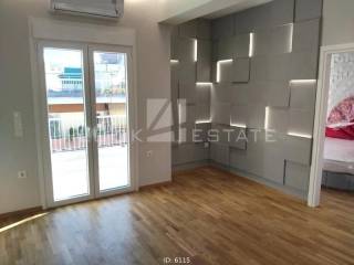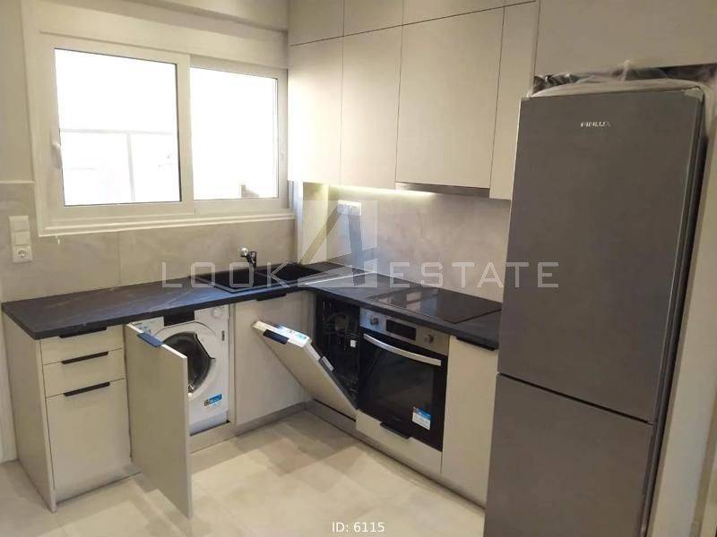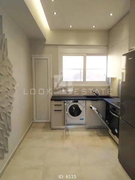 Stathmos Larisis - Apartment 60sqm fully furnished, bedrooms 2, levels 1, 5th (60sqm), penthouse, fully renovated, year built 1965, renovation year 2022, energy class C, living room, kitchen, bathroom, heating type: autonomous, heating medium electricity, air condition, dual aspect apartment, luminous, view unobstructed view, frontage, painted, electric roller shutters, solar heater, balconies, large balconies, tents, elevator, built in appliances, frames aluminum, double glazed windows, floor type wood, night electricity discount rate, secure door, video doorbell, residential zone, access from asphalt, close to bus stop (up to 100m), close to metro/train (up to 100m).
