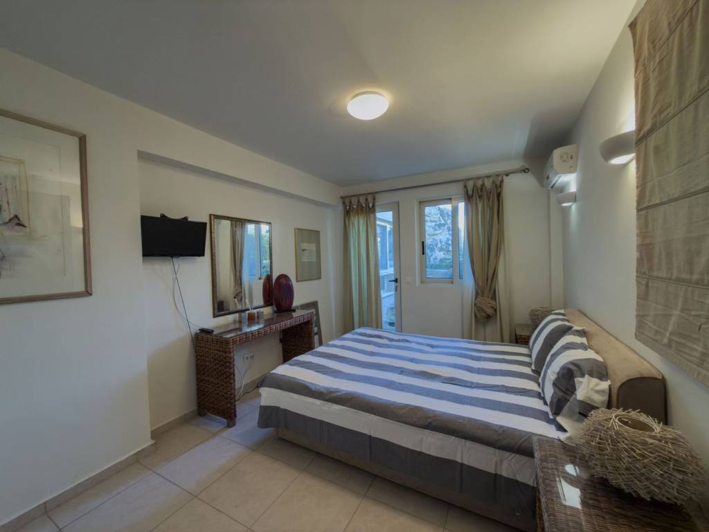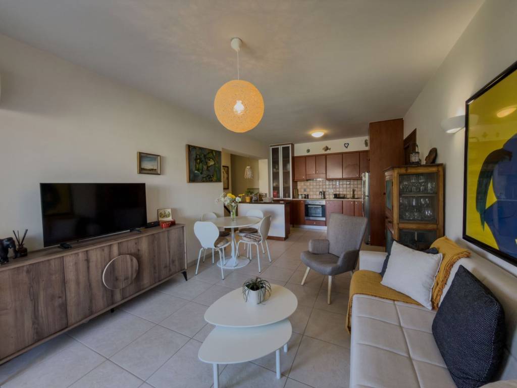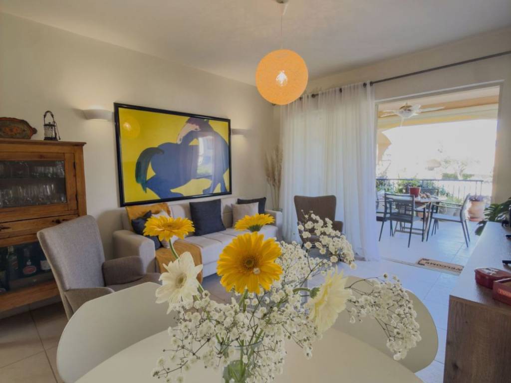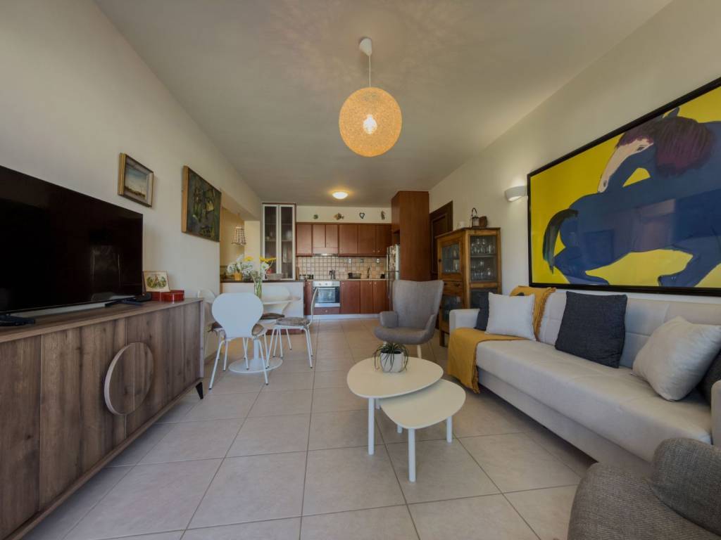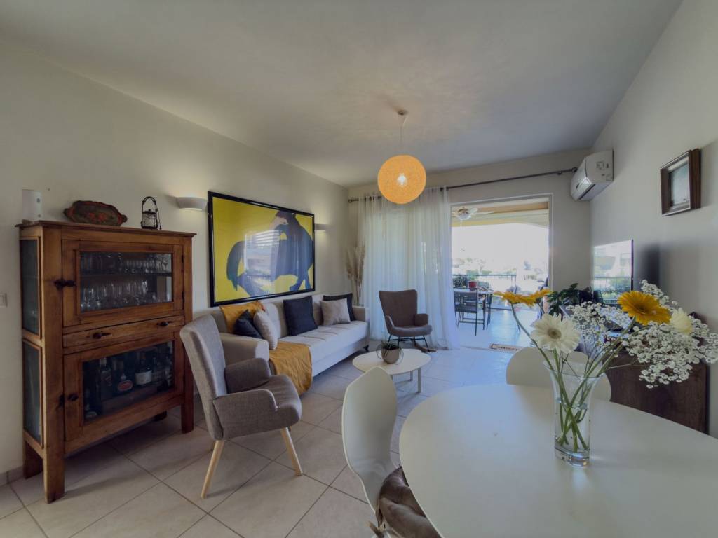 The apartment is in a luxurious, seaside resort, about 20 minutes' drive west from Chania city. The complex is situated right in front of the beautiful beach of Pyrgos Psilonerou and has large, lush gardens and a tasteful, themed pool of 250 m². The area is beautifully landscaped and along the beach there are benches as well as promenades and green spaces. The beach has areas with sand or pebbles. It is quite large and has spaces with facilities or more quiet areas. The apartment is arranged over two levels, which are connected internally but are also accessible separately. A few steps lead to the main entrance on the ground floor, which is elevated. Inside we find an open-plan kitchen, dining and living area with exit to the terrace and the garden. On the ground floor there are also a bathroom with shower and a bedroom with a fitted wardrobe. The basement is designed so that it can very easily become a second, completely independent apartment. It comprises also an open-plan area with kitchen, two bedrooms and a bathroom with shower. The main areas and the bedrooms have air conditioners. The doors and the windows are aluminum with screens and double glazing. It is situated in a mainly tourist area, which makes the property also suitable for tourist use. Within walking distance, you will find a mini market, a pharmacy and some restaurants and cafes along the beach. In nearby Maleme, there are a big supermarket and several shops. The area has seen growth in recent years and the sale price of the apartment makes it a very good investment.