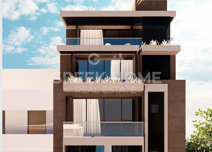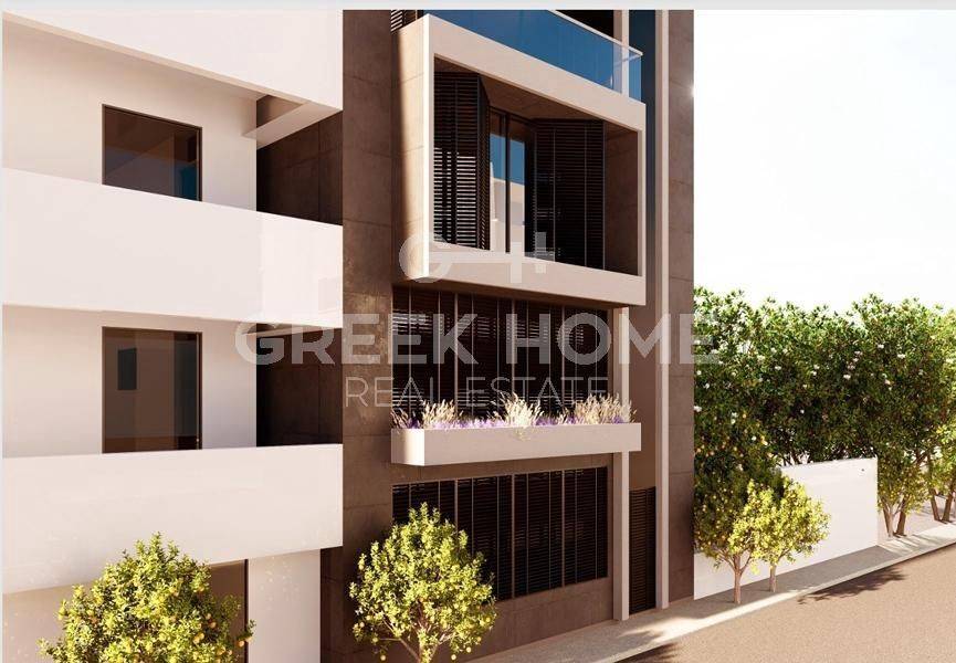 Gouva - Floor Apartment 70sqm bedrooms 2, raised 1st, under construction, year built 2026, energy class A+, living room, hall, kitchen, bathroom, wc, heating type: autonomous (heat pump), air condition, quiet, dual aspect apartment, luminous, frontage, solar heater, external thermal insulation, balconies, elevator, aluminum frames, double glazed windows, door screen, ceramic tiles floors, secure door, luxurious.