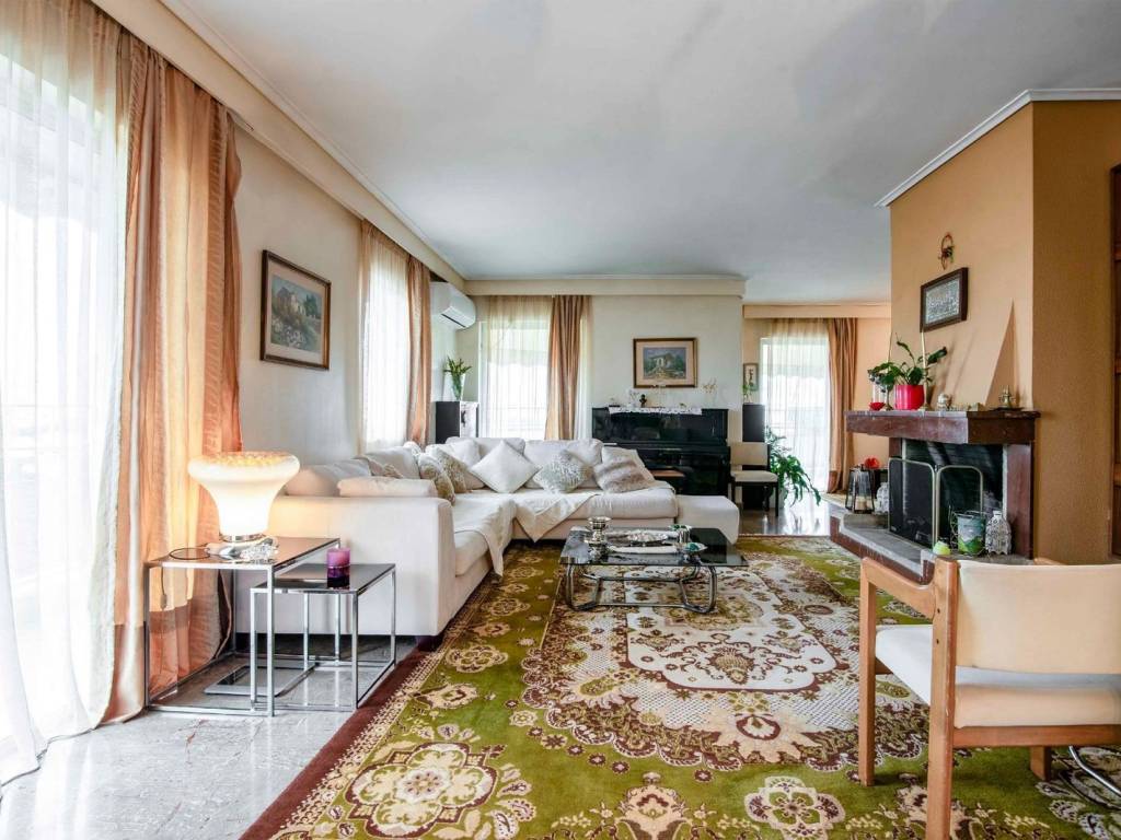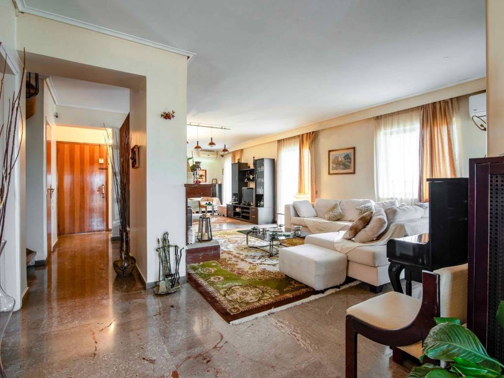 A spacious and bright 4th floor penthouse, total surface of 170 sqm, built in 1975, in a quiet residential neighborhood of Agia Paraskevi. The apartment has a large living-dining room with fireplace, a spacious kitchen, 3 bedrooms, including one master, 1 additional bathroom, a guest WC and a laundry room with partial storage, which is complemented by the underground storage room (about 10 sq.m.) ensuring practicality and convenience. An internal staircase leads to a loft of 12 sqm, ideal either for an office or a guest room, and to an exclusive use terrace with potential for development. The balcony around the perimeter of the apartment and the small terrace offer brightness and an open horizon. The floors are marble and wood. The heating is air-conditioned while there is the possibility either to connect to the existing central oil heating or to install gas supply that covers the area. At the entrance of the building there are 2 parking spaces. The privileged location of the apartment offers easy access to public and private schools, the local market and public transport making it an ideal choice for families seeking quality of life in the northern suburbs. Possibility of separating the property into two independent properties, for investment purposes. Agia Paraskevi is a beautiful and quiet urban suburb with a very good quality of life. It is ideal for families as it has many parks and playgrounds and is within walking distance of many international schools such as Deree / Pierce College and Franco- Hellenique Lycee. Two popular activity and market centers are the main squares (Agia Paraskevi square and Agios Ioannis square), around which various commercial leisure interest places are gathered as well as cafes, elegant restaurants, shops and banks. Accessibility: It is located very close to Attiki Odos which is the Athens’ Ring Road and is accessed by 3 Metro stations and 2 Suburban Train stations. Several buses serve destinations in neighboring suburbs as well as in central Athens. The airport is just a 20 minutes drive away and the Motorway is a 12 minutes drive away. Investment Dynamics: The ideal choice for excellent living near the city center in a luxurious urban area, with good return on investment and living in a green environment.