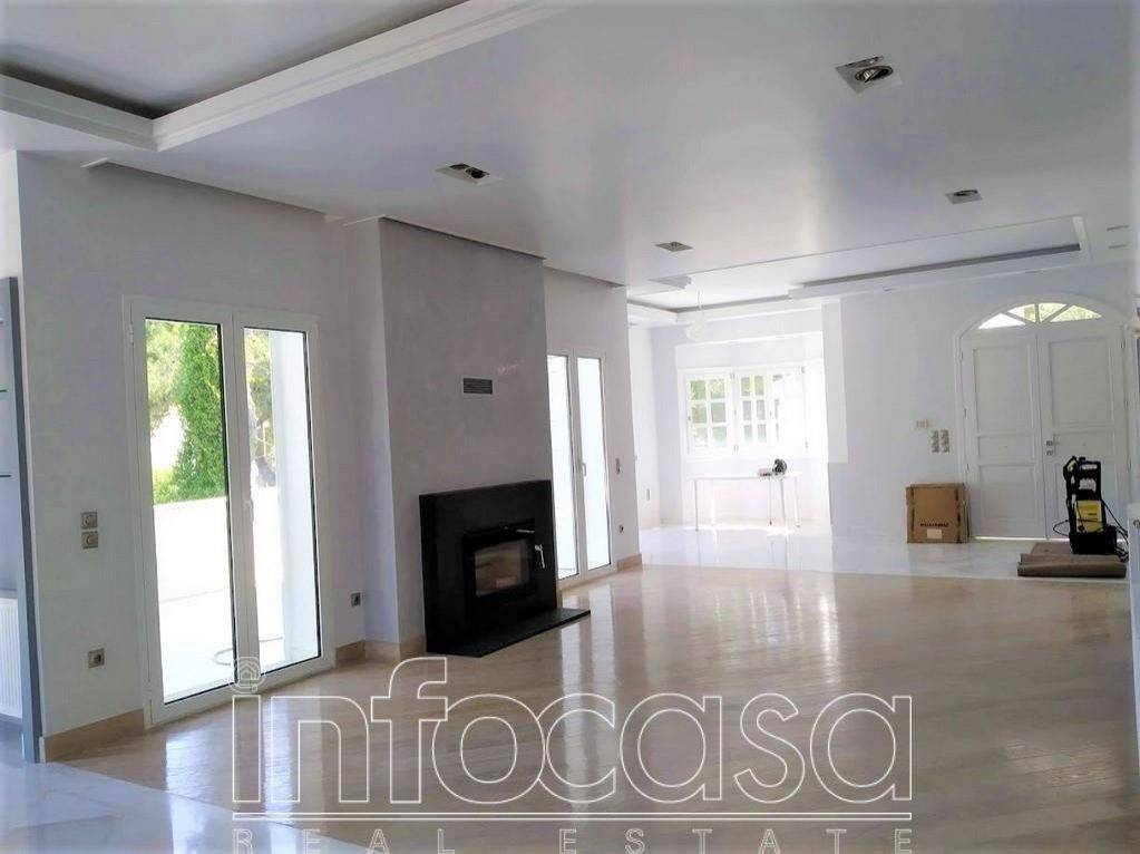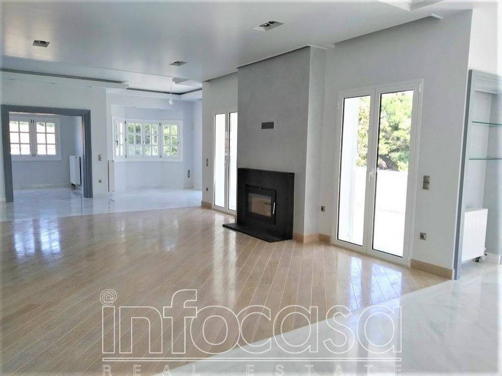 Dionysos: Near Kairi Avenue a newly built modern-style apartment of 230 sq.m., spread over 2 levels. On the first level, there is a spacious reception area with an energy-efficient fireplace, a dining area, an office, and a large terrace with unobstructed views. The kitchen is independent, very bright, fully equipped with appliances, and has a seating area. It includes 2 large bedrooms, 1 bathroom, and 1 WC. On the second level (accessed by an internal elevator), there is a living room with a fireplace, a bathroom, a kitchenette, and a large roof garden with views. The apartment is newly built (2021), located on the first floor (penthouse) of a duplex, with excellent and modern construction. It features autonomous oil heating, a boiler, internal and external alarm systems, marble floors from Dionysus, and wooden floors in the bedrooms, aluminum frames, double glazing, and screens. Pets are not allowed. Price: €2,000., Contact Phone: 00306939725957 & 00302106233945, info@infocasa.gr, www.infocasa.gr