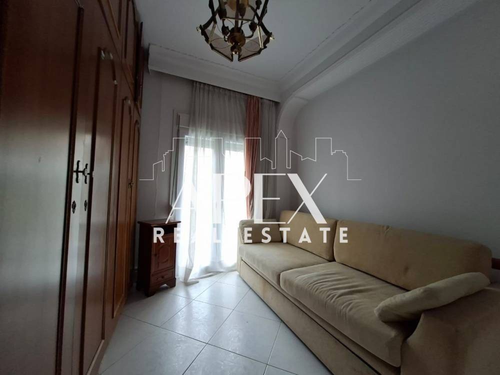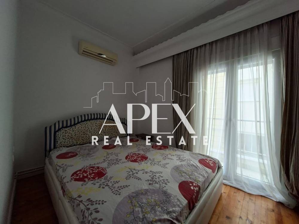 Luxurious apartment of 90sq.m. with a view, for rent at 40 Ekklisies. It is renovated and is located on the 1st floor (without elevator). It consists of two spacious bedrooms, a bright kitchen, a large living - dining room, an entrance hall and a bathroom. It is fully furnished, has electrical appliances, verandas around the perimeter, an armored door, double-glazed window frames with insect screens and individual natural gas heating. It is situated in an ideal location in the city, close to the Universities, school, market and public transportation.