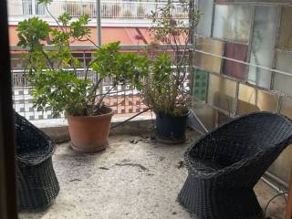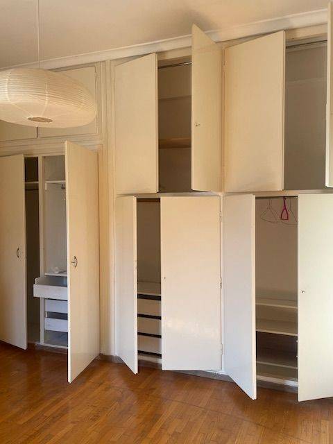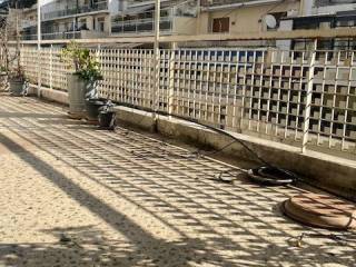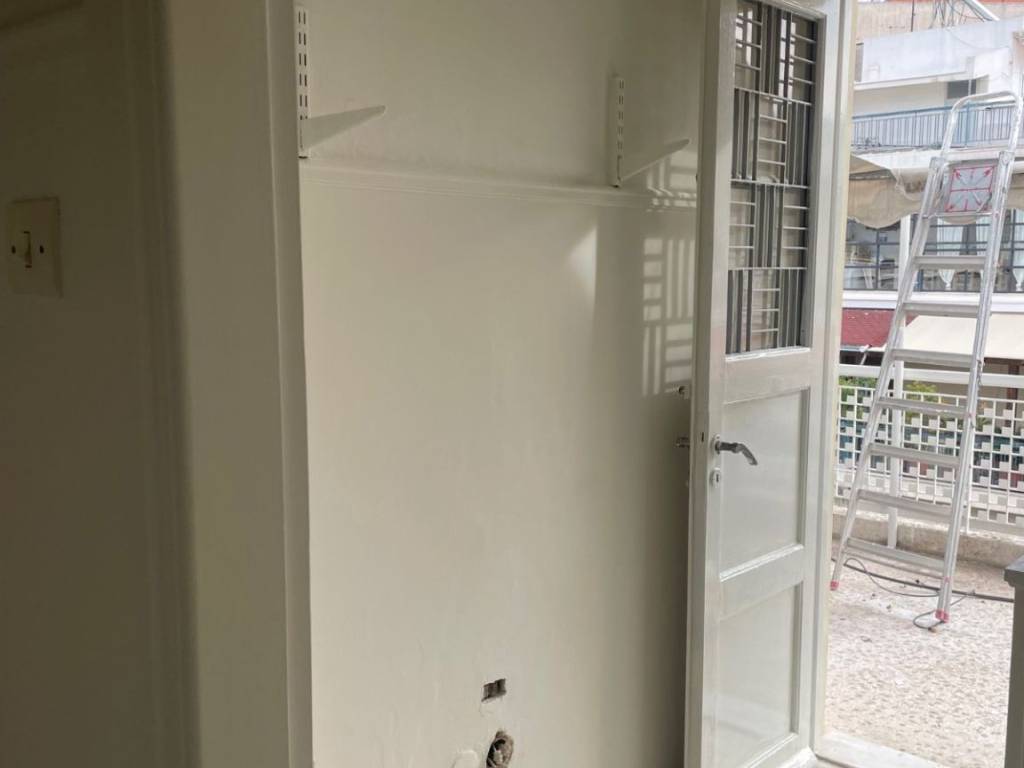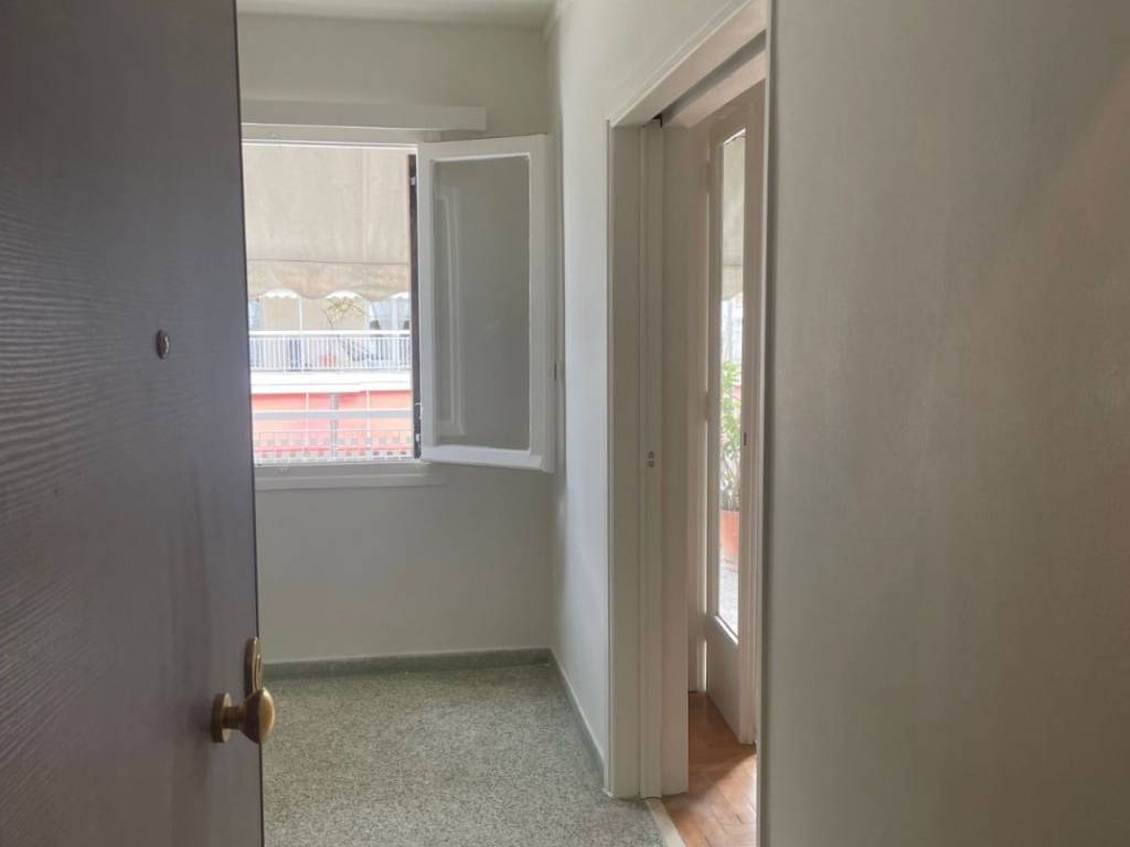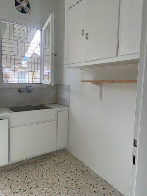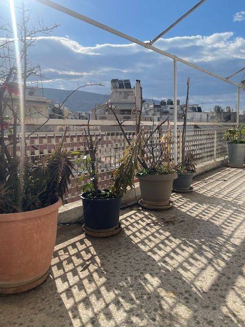 Penthouse in the center of Pagrati. All rooms open onto a 12.50x2.60 terrace with a limited view of Hymettus. Spacious bedroom with large wardrobe, living room, hallway, kitchen and bathroom. 60s aesthetic: wooden floors and frames, marble sink and colored tiles. Partial renovation in progress. Close to bars, restaurants at Pagrati and at the Center of Athens, 15 min to Evaggelismos metro station also close to bus station.