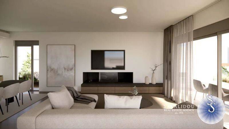 Voula Ano, in the beautiful area of ​​Dikigorikon, under construction Penthouse Maisonette 3rd - 4th floor with a total area of ​​149 sq.m., minimal architecture and construction, with a view, two levels, which is divided as follows: the 3rd floor 93 sq.m. and the 4th floor 56 sq.m. Additional storage room 17.50 sq.m. and 1 basement parking space. The house is A + energy class, is located in an excellent location and in a very nice neighborhood. It has underfloor heating - Fan Coil, wooden oak floors, pre-installation of an electric car charger, pre-installation of alarm wiring, security doors, video door entry, fireplace, internal staircase, energy-efficient windows, screens, verandas and 10cm thermal facade. The building has been meticulously designed with modern elegance and practicality in mind. Apartments of high aesthetic value, constructed with high quality materials, offer low energy consumption using the latest in thermal insulation and autonomous heating technology. Delivery is estimated at approximately the end of 2026.