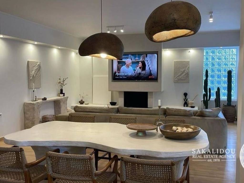 Glyfada Center, fully furnished Maisonette 164 sq m., 1st - 2nd floor, recently renovated in 2025, very close to the square on foot, center-outside, fantastic location, frontage and bright. It has a comfortable living room with fireplace, amazing open plan kitchen fully equipped with branded built-in electrical appliances, 2 bedrooms, 1 Master, a total of 2 bathrooms, large verandas, renovated frames, screens, awnings, air conditioning in all rooms, autonomous oil heating, smart TV, 1 basement parking space, great location, very close to the central square on foot.