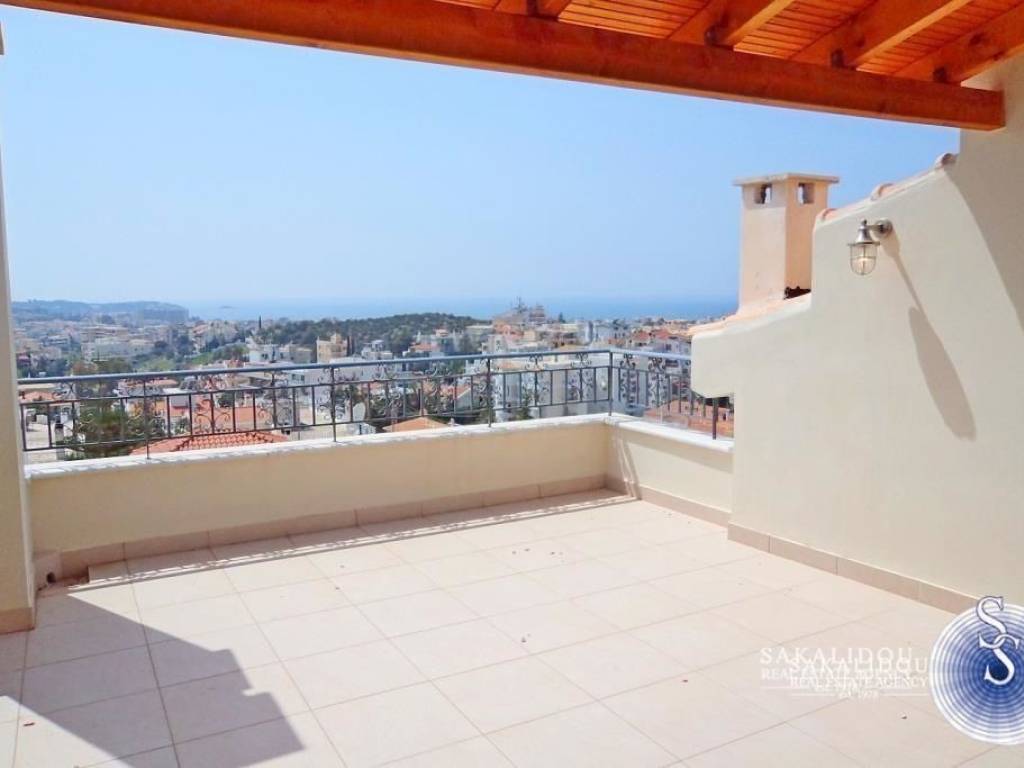 Voula, Nea Kalymnos – Penthouse maisonette of 130 sq.m. on the 3rd and 4th floor. It consists of a spacious and bright living room with beautiful sea and mountain views, an open-plan kitchen, 3 bedrooms, and 2 bathrooms. The property features a large roof garden with stunning sea views and a BBQ area. It also offers access to a shared swimming pool and garden, autonomous heating with oil, air conditioning, a storage room, and one parking space.