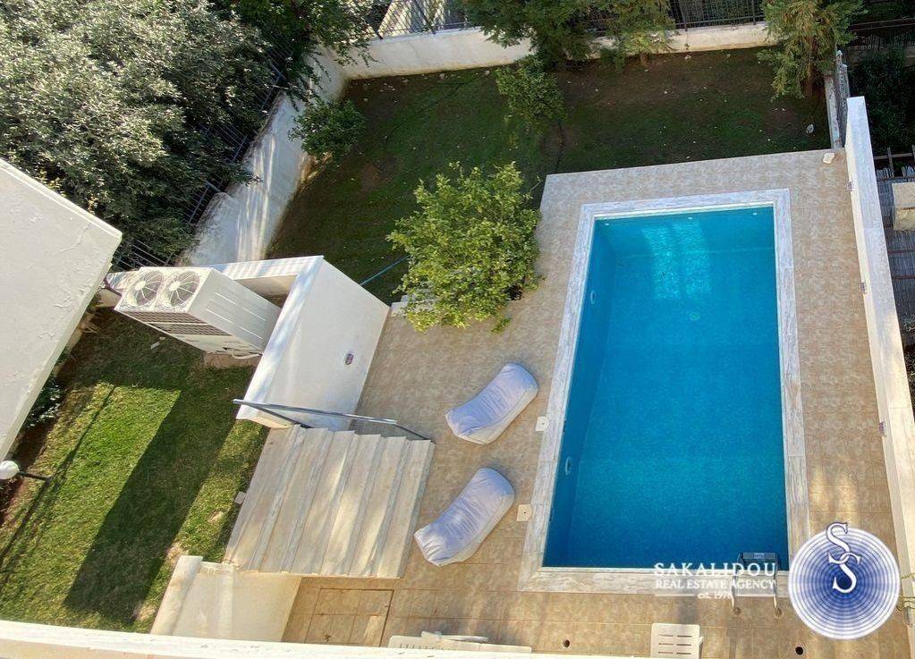 Voula, Ano, amazing newly built maisonette of 175 sq.m, 1st - 2nd floor, with amazing sea view and horizon, located in a building with common use outside swimming pool, nice garden in a very quiet neighborhood. Its consist of very bright living room with fireplace, separate kitchen fully equiped, 3 bedrooms, 1 master, bathroom, wc, independent heating by oil, storage room and parking space in the basement.