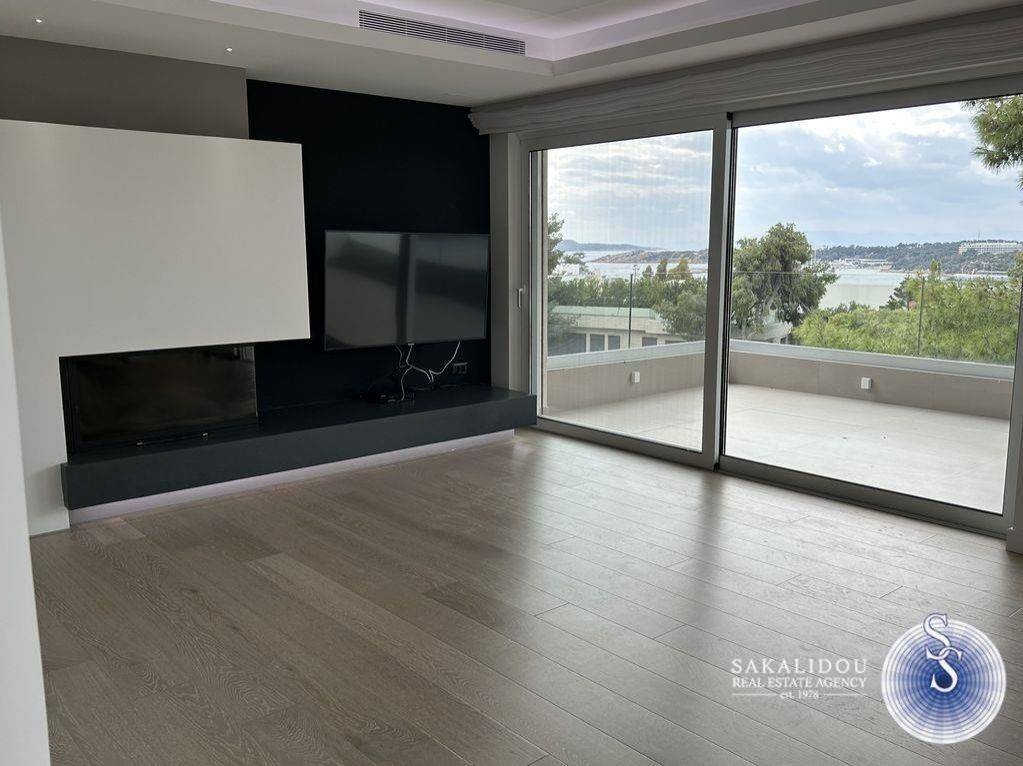 VOULIAGMENI, Minimal Aesthetics Fantastic Penthouse apartment of 140 sq.m., 2nd floor, with a unique sea view and horizon from inside the apartment, fully renovated `18, luxury construction, has a comfortable and very bright living room area with view and openness, 3 master bedrooms, large verandas, branded Miele built-in electrical appliances, fireplace, central air conditioning, alarm, double glazing, electric shutters, with screens, electric curtains, parquet floors, security door, no elevator and with 1 parking place (outdoor), available also fully furnished at another price.
