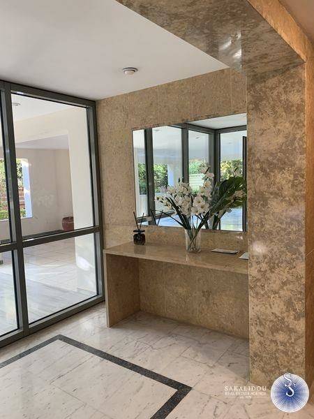 Voula Kato, close to the beach, modern 3rd floor apartment, 187 sq m, with an additional room for office use, has a comfortable reception area - living room area with fireplace, very bright dining room area and a cozy kitchen room area with daily sitting room area, 3 bedrooms (2 are master with jacuzzi), 2 bathrooms, 1 WC, autonomous heating with oil, screens, solar water heater, alarm, electric awnings, verandas, security doors, 2 basement parking spaces and storage room, in an excellent location. Pets welcome.