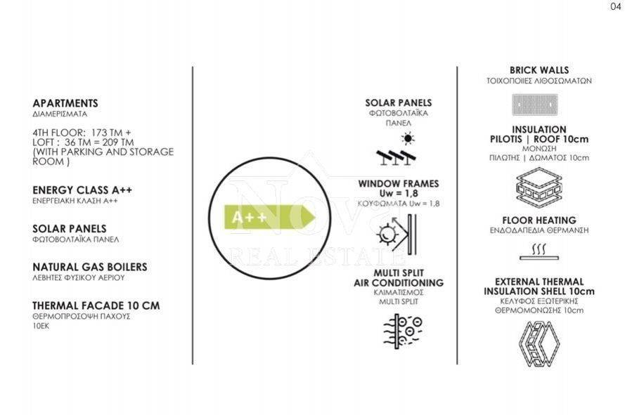 Under construction penthouse of 219 sq m in Glyfada, close to the sea Modern, independent penthouse of 219 sq m for sale in Glyfada, in a project with completion in 2025 and energy class A++. The apartment occupies the 5th and 6th floors as a penthouse, is under construction at the window frame stage and offers 3 bedrooms with one master, living room, kitchen, 2 bathrooms and a separate WC. Ideal for those looking for a luxurious, bright home in a quiet, airy location with sea view and a private terrace of 150 sq m, up to 50 meters from the coastline. The property is designed with attention to functionality and quality of construction. It has built-in appliances, aluminum frames with double glazing and screens, electric shutters and underfloor heating combined with autonomous natural gas heating and boiler. The thermal insulation cladding and the thermal facade ensure energy savings, while the construction stage of the frames indicates that the delivery is made with modern materials. The interior combines marble and wood on the floors, has a fireplace in the living room and large verandas with awnings, offering comfortable outdoor areas. The equipment includes a solar water heater, boiler, storage space of 17 sq.m., painted and ready for furniture, as well as 3+ closed parking spaces. There is an elevator, garden at the entrance, a disabled access ramp, security door, alarm, security cameras and video intercom for increased security. The privately owned terrace of 150 sq.m. is offered for barbeques and social uses, with the possibility of installing a car charger. This is a modern and luxurious property, with bright, airy spaces and a privileged facade that takes advantage of the view of the sea. The location in Glyfada offers easy everyday life and a high quality of life. The apartment is very close to the beach, within a radius of up to 50 meters, and within a distance of up to 100 meters from a school, market and sports facilities, while a bus or trolley stop is also nearby. Glyfada combines a cosmopolitan character with a neighborhood adapted to family life: pedestrian streets with shops and restaurants, a marina and recreational areas, parks and sports options. There is easy access to public transportation and a connection to the center of Athens, making the area convenient for daily commutes and short getaways to the coastal front. Glyfada is an area with a steady demand for high-quality housing, ideal for those who want to combine a modern lifestyle with access to the sea and complete infrastructure.