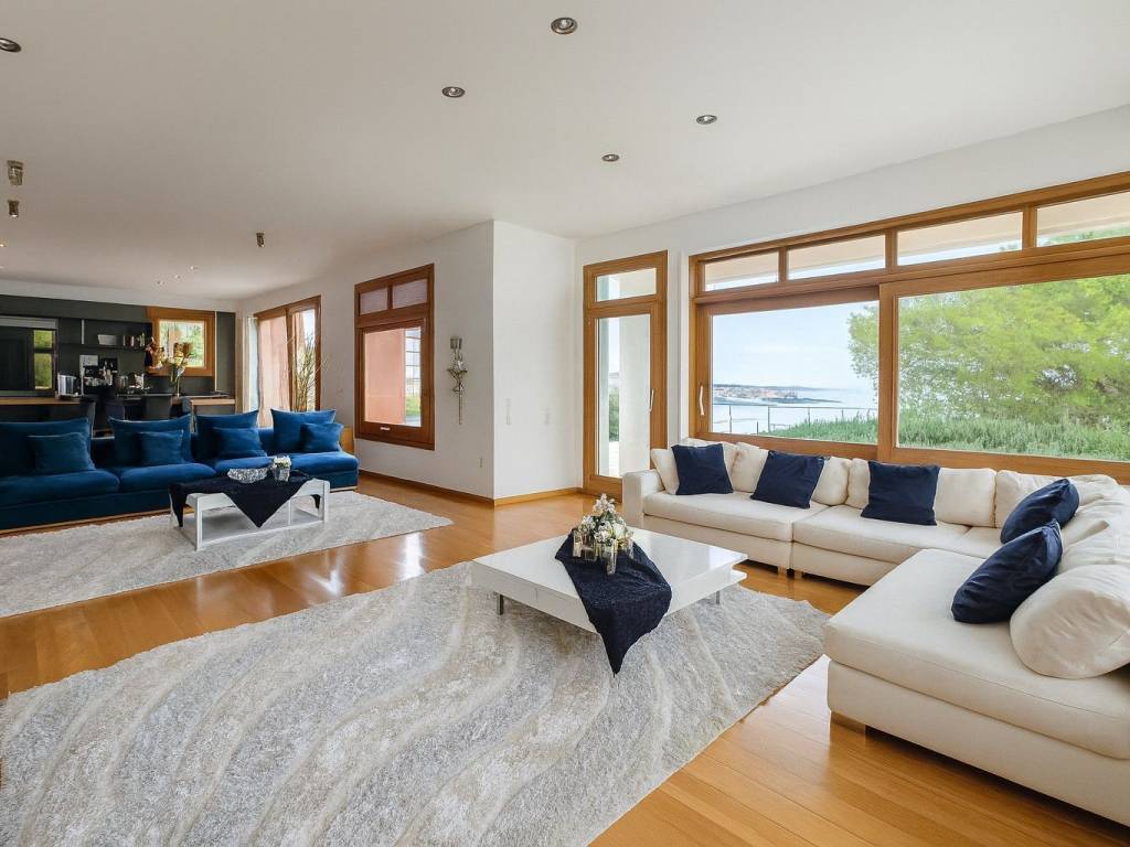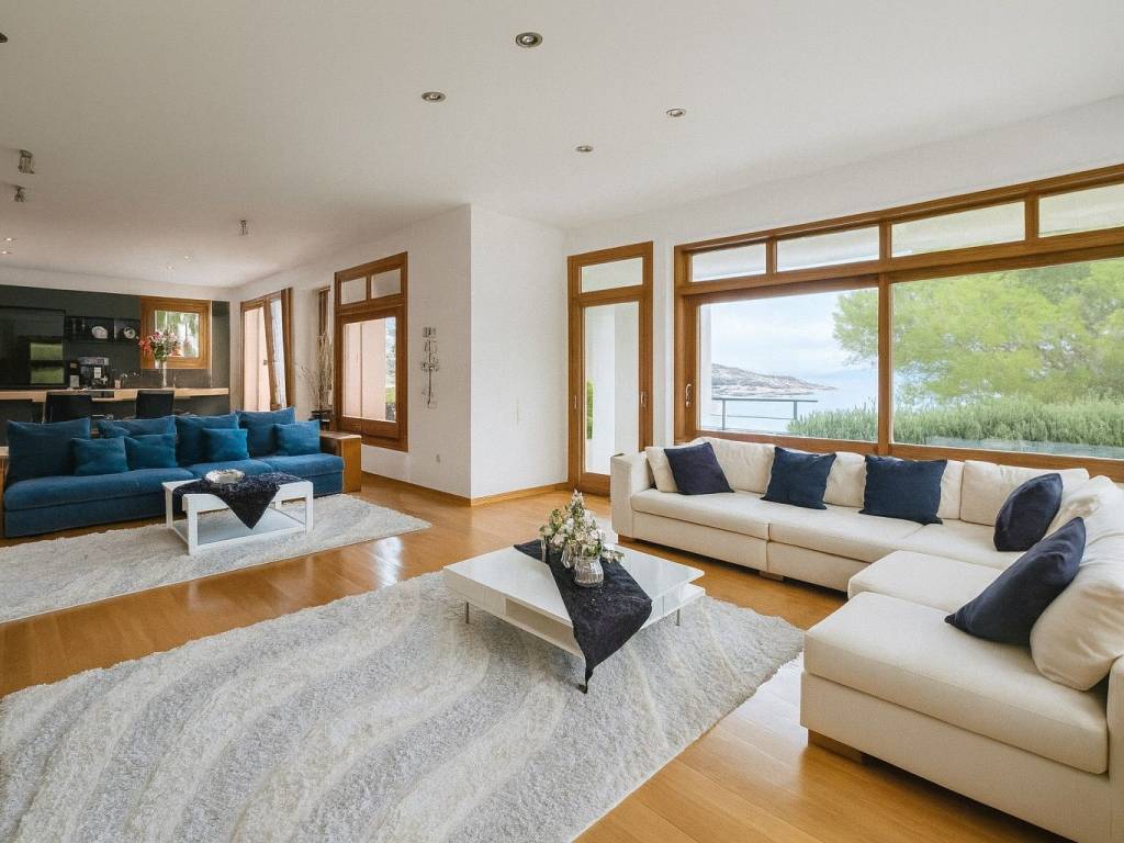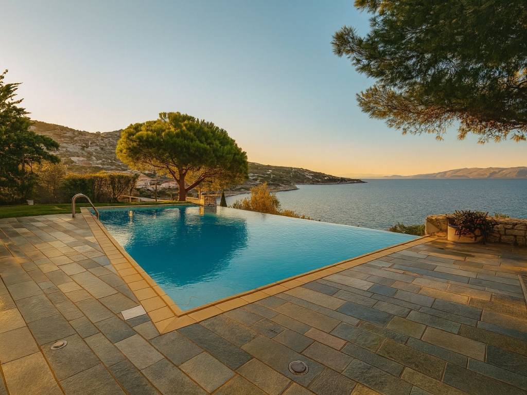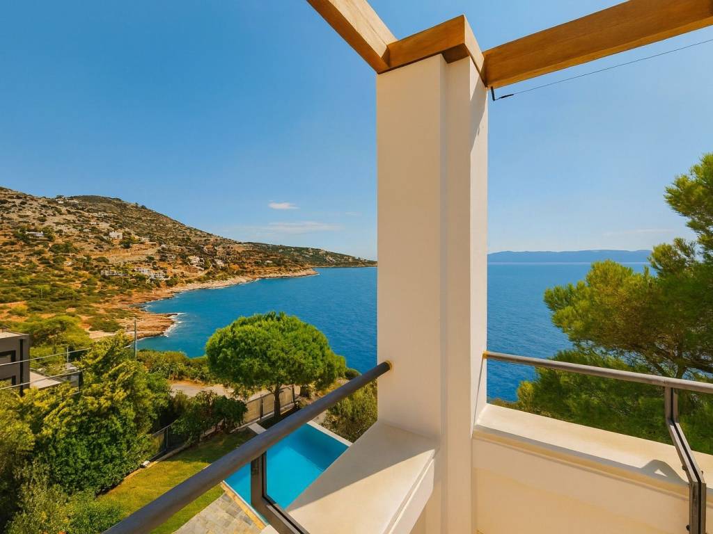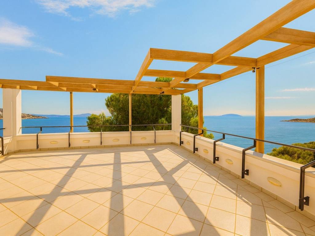 Seafront Masterpiece in Schinias — Grand 5-Bedroom Mansion with Infinity Pool & Rooftop Terrace Situated just steps from the crystalline shoreline of Schinias, this fully furnished five-bedroom estate is a rare coastal trophy property along the prestigious Athenian Riviera. Encompassing 844 m² of living space on a 1,060 m² plot, the three-level residence is designed to capture uninterrupted sea views and effortless luxury living. Approached via dual road access and located only 1 km from the village center, the property enjoys walking proximity to the protected shoreline of Schinias National Park. Landscaped gardens frame a spectacular heated infinity overflow pool that visually merges with the horizon, creating a resort-style setting of exceptional privacy. Interior Layout The residence is grand in scale yet intelligently zoned for comfort, hosting, and independence across its levels. Main Level Formal reception salon with fireplace Dining room for entertaining Executive office Fully equipped chef’s kitchen Master guest suite Upper Floor Two private luxury suites, each featuring: Living room with fireplace Kitchenette Expansive balconies Access to panoramic rooftop terrace with sweeping sea views Garden Level Family living lounge with fireplace Full secondary kitchen Two master bedrooms Fully equipped gym Staff quarters with laundry facilities A premium OTIS stainless-steel elevator connects all floors seamlessly. Outdoor & Technical Features Heated infinity pool with overflow edge Landscaped gardens and multiple terraces Built-in BBQ station for entertaining Covered garage for 4 vehicles + guest parking Electric gated entry Advanced HVAC climate systems Location & Lifestyle The home offers rare tranquility while remaining close to cultural landmarks such as Marathon and the renowned Marathon Archaeological Museum. The setting combines natural beauty, historic significance, and effortless access to Athens, making it ideal as either a year-round residence or an elite coastal retreat. Property Highlights 5 Bedrooms 6+ Bathrooms 844 m² Interior 1,060 m² Plot Direct seaside setting