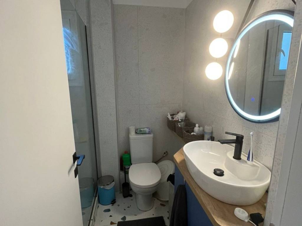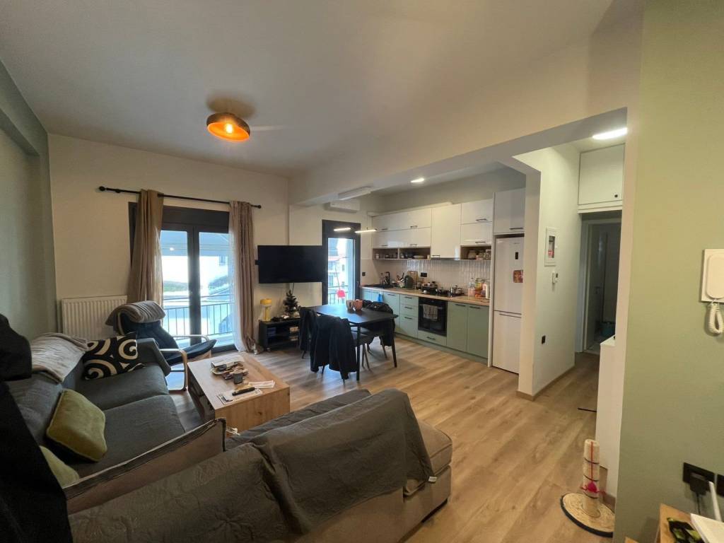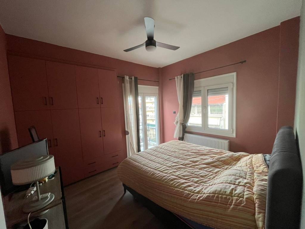 In the city center, a fully renovated 50 sq.m. apartment (renovated in 2024) is available for rent, featuring high-quality materials and a modern aesthetic that offers comfort and functionality. The apartment consists of: • Bright bedroom with built-in wardrobe and ceiling fan with lighting • Modern bathroom with shower and mirror with integrated lighting • Spacious open-plan living room and kitchen with a built-in contemporary kitchen It is rear-facing, offering greater quiet and privacy, and features an awning on the front balcony. Additional amenities: ✔ Insect screens on all windows ✔ Security door ✔ High-speed fibre optic broadband. ✔ Light fixtures included An ideal choice for a professional or a couple seeking a modern and functional home in the center of Larisa, with immediate access to shops and public transportation. Available immediately. Rented unfurnished. No agents, please.