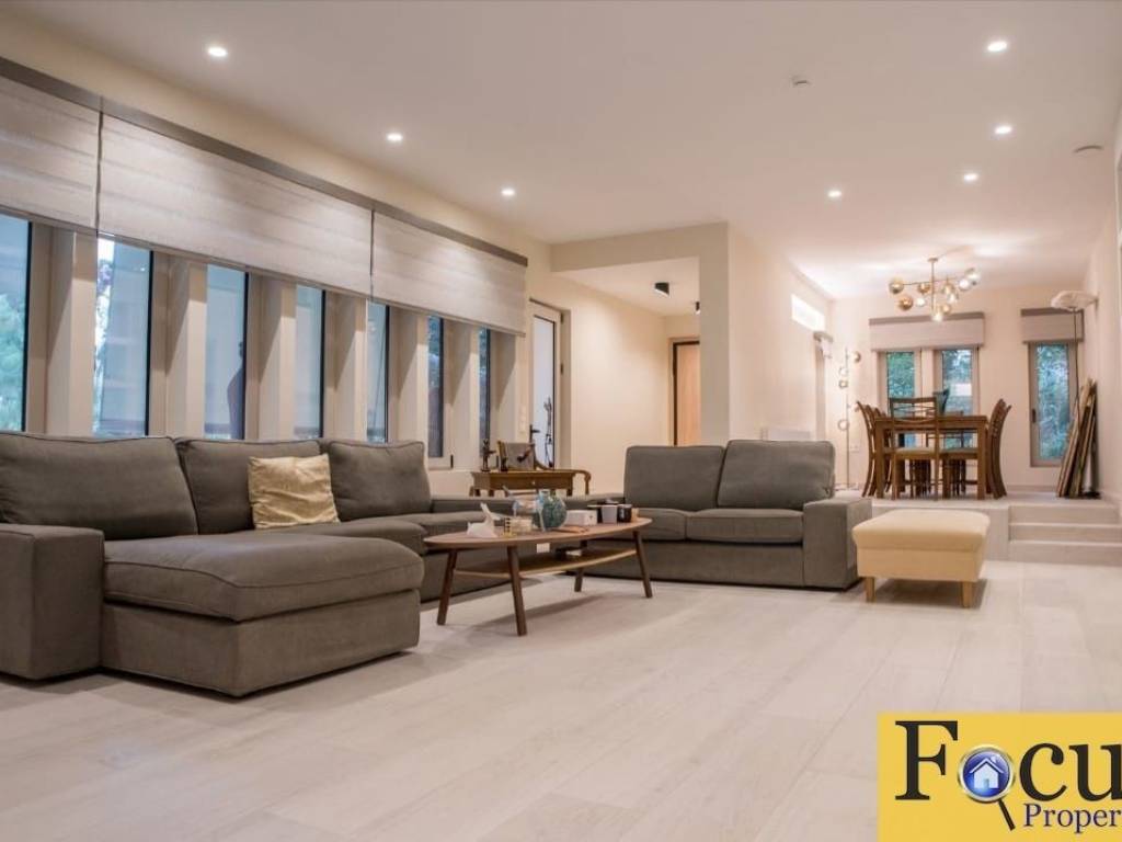 Vouliagmeni, luxurious ground floor apartment of 135 sq m, in an excellent location of Vouliagmeni, just 150 meters from the sea. Furnished, it consists of a large and bright living room with fireplace and raised dining area, a custom-made kitchen with built-in electrical appliances, 3 bedrooms with wooden floors (2 masters with ensuite bathrooms) and 3 bathrooms in total. It has a heating/cooling pump with fan coils, solar water heater, aluminum frames, security door, alarm, smoke/fire detectors as well as ceiling fans in the 3 bedrooms, the kitchen and the terrace. Underground parking space and underground storage room of 10 sq m. Year of construction: 1980. Completely renovated in 2025 (completion 15/12/2025). Price: €4,500. Focus Properties Real Estate Contact Number: +302109888132