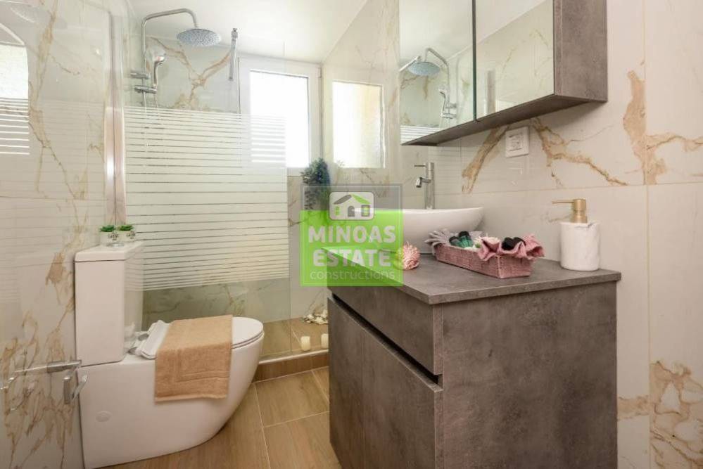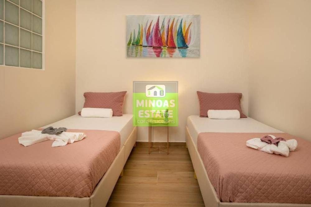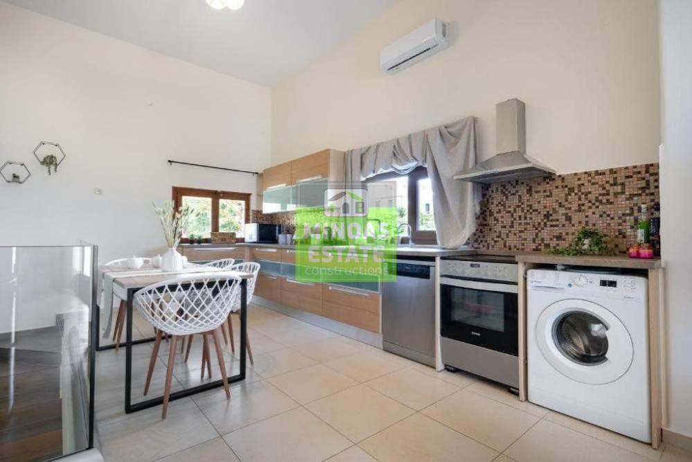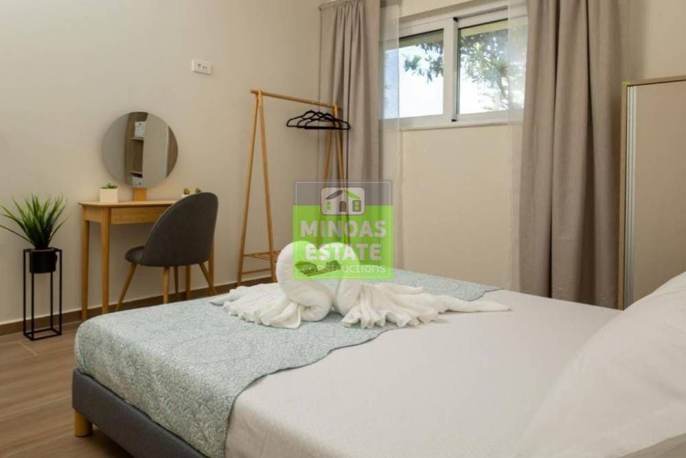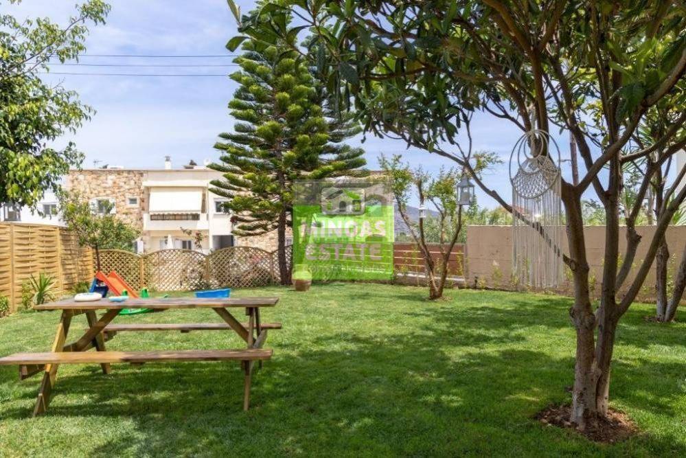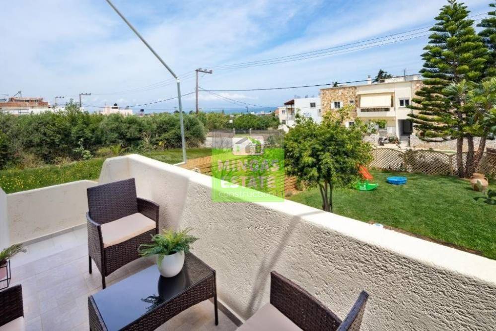 Nea Kydonia, Agia Marina: For rent, airy, very beautiful and bright Maisonette 100 sq.m. (with 180 sq.m garden) luxury, on the ground floor of 2 levels with individual heating (air conditioning). It consists of 3 bedrooms, 1 living room, Garden, and bathroom. It is fully furnished, equipped, with electrical appliances, painted and has a nice view, aluminum frames with double glazing, security door, outside parking spaces, tiled floors, awnings, screens, solar water heater. It has a large surrounding area, with lawn, playground , swimming pool Index 4.00*2.00. Located very close to the sea, supermarkets, schools, pharmacies. It is ideal for families or working people and pets are allowed. Price €1,000 | Property Code: #E-15387