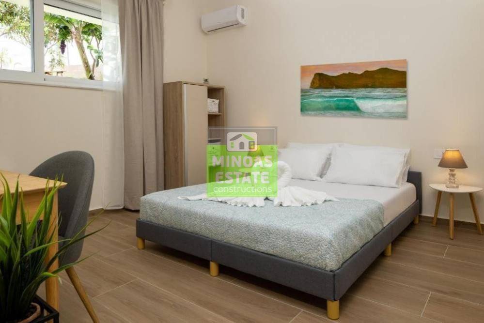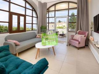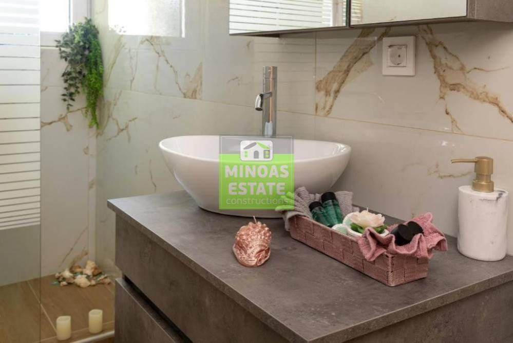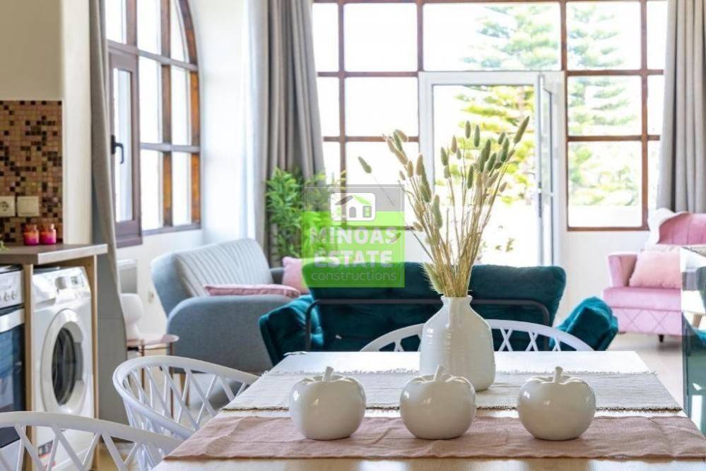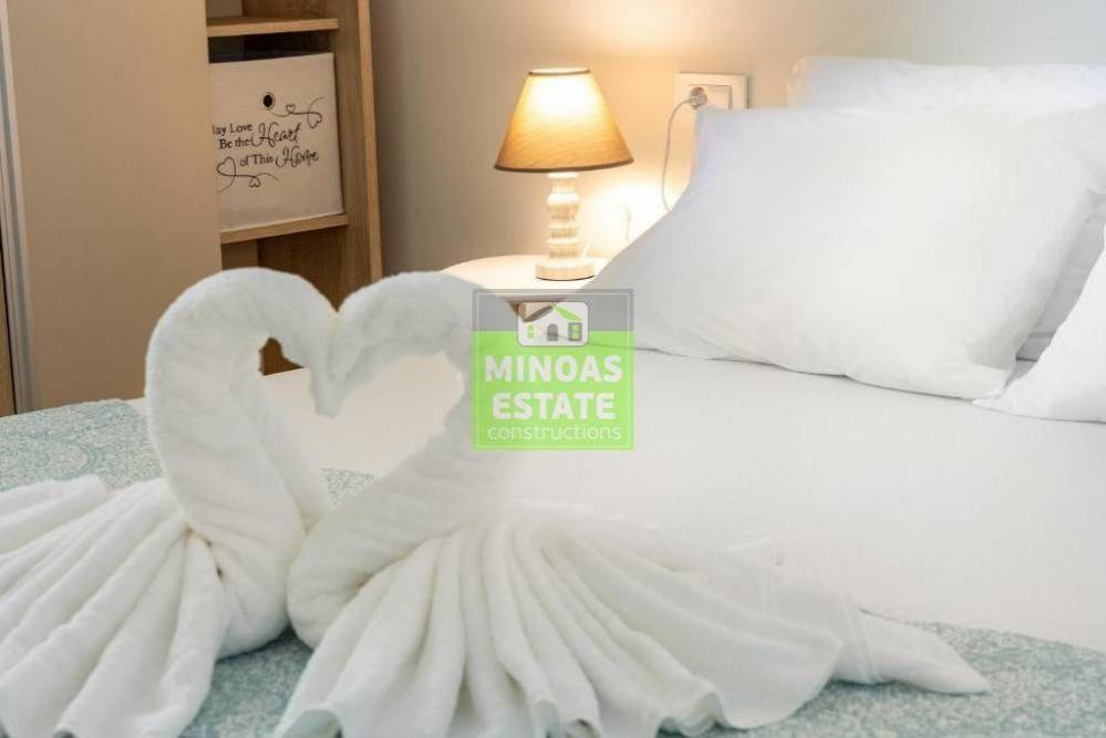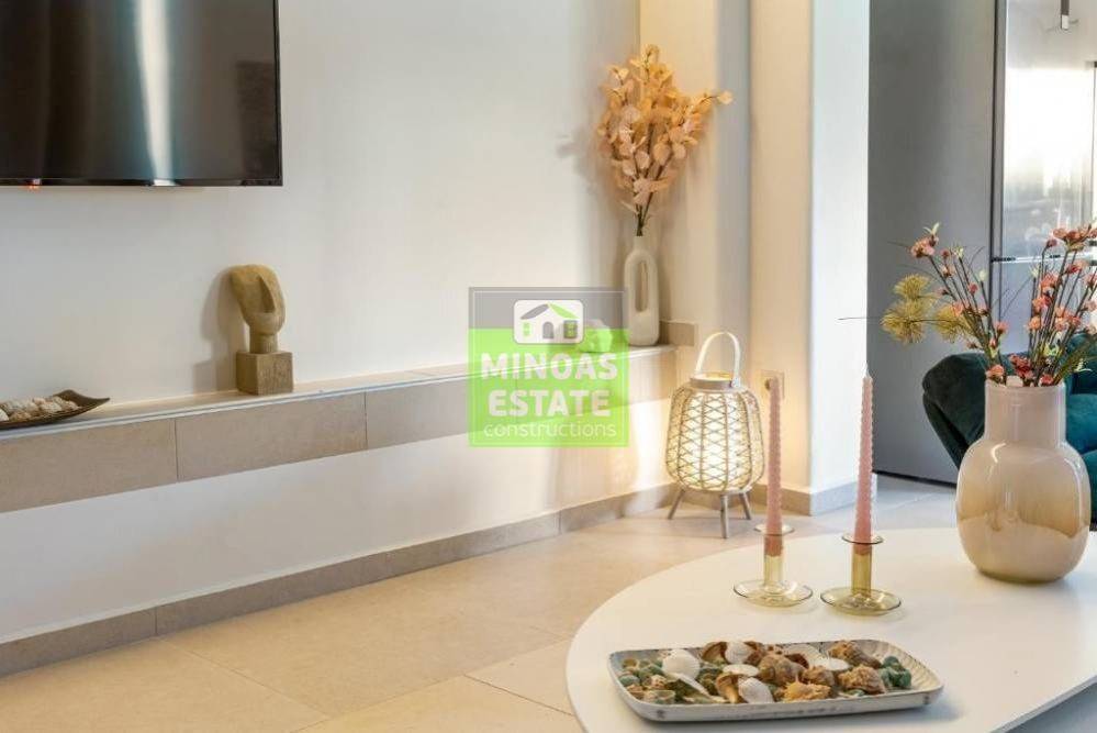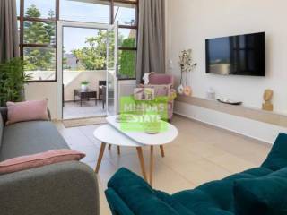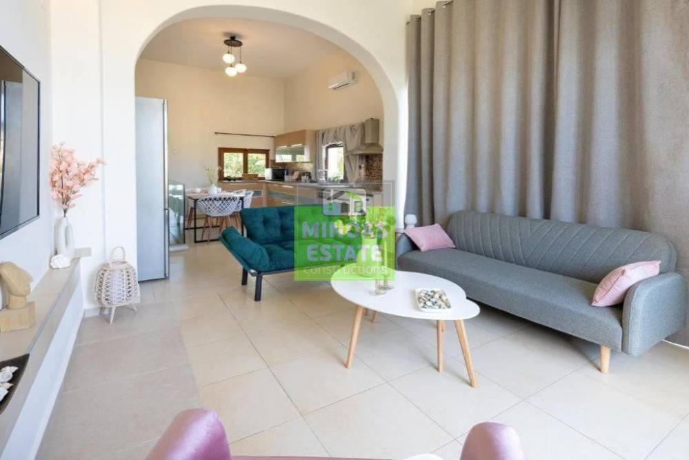 Nea Kydonia, Agia Marina: For rent, airy, very beautiful and bright Maisonette 100 sq.m. (with 180 sq.m garden) luxury, on the ground floor of 2 levels with individual heating (air conditioning). It consists of 3 bedrooms, 1 living room, Garden, and bathroom. It is fully furnished, equipped, with electrical appliances, painted and has a nice view, aluminum frames with double glazing, security door, outside parking spaces, tiled floors, awnings, screens, solar water heater. It has a large surrounding area, with lawn, playground , swimming pool Index 4.00*2.00. Located very close to the sea, supermarkets, schools, pharmacies. It is ideal for families or working people and pets are allowed. Price €1,000 | Property Code: #E-15387
