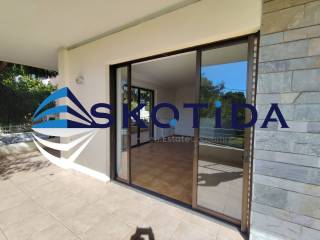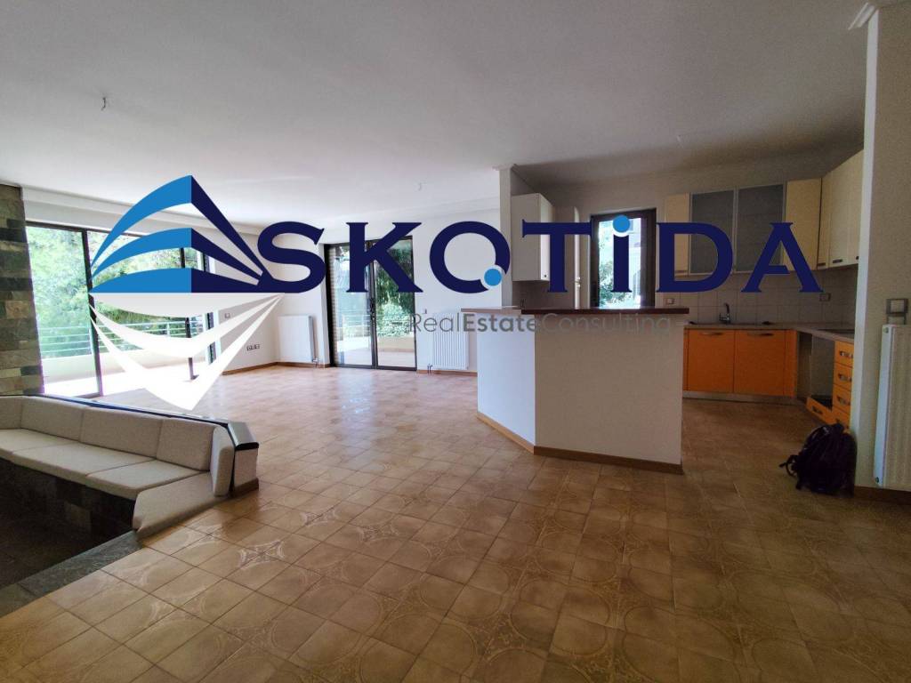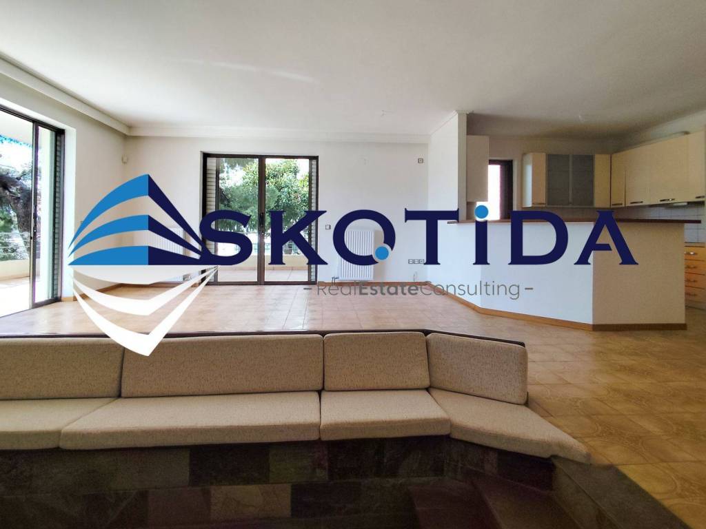 Bright, spacious and elegant first-floor whole-floor apartment (152 sq.m.) with private entrance, located in a three-storey building within a beautiful pine-tree setting. Layout Entrance hall 3 large bedrooms with built-in wardrobes Additional storage space with closets in the hallway 1 main bathroom 1 WC Separate laundry area Open-plan kitchen with breakfast bar Dining area and living room Separate sitting area with fireplace Features Autonomous natural gas heating Air conditioning Security alarm system Fireplace Large covered balconies surrounding the apartment with open views Private parking space within the property Orientation: East–South No common building expenses Additional Information Year of construction: 2005 Energy class: C (100%–141%) Immediately available Playground located directly opposite Shops and supermarkets within walking distance Quiet, privileged residential neighborhood