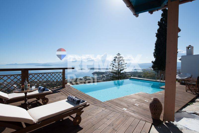 Διατίθεται προς πώληση συγκρότημα κατοικιών στην περιοχή του Μιραμπέλλου, στην κορυφή ενός λόφου με θέα τον κόλπο του Μιραμπέλλου με απεριόριστη - ανεμπόδιστη θέα προς την θάλασσα. Αποτελείται από τρεις πολυτελείς κατοικίες, που βρίσκονται σε οικοπεδικη έκταση 697 m2 συν την πισίνα. Αναλυτικά: 1) Πολυτελής βίλα 3 επιπέδων συνολικής καλυπτόμενης επιφάνειας 380 m2, αποτελείται από 4 master bedrooms καθώς και ένα μικρότερο υπνοδωμάτιο,2 σαλόνια, 2 κουζίνες,2 μπάνια ,2 W.C,βεστιάριο, βοηθητικό χώρο μπάνιων καθώς και σοφίτα. Ο κάθε όροφος έχει δικιά του ξεχωριστή είσοδο. Το ακίνητο είναι εξοπλισμένο με κεντρική θέρμανση,ανεξάρτητη σε κάθε επίπεδο,μπόιλερ 300 lt, το δεύτερο σαλόνι διαθέτει τζάκι,κλιματισμό στους περισσότερους χώρους,κουφώματα αλουμινίου, το ακίνητο επίσης διαθέτει και αυλή με αποθήκη. 2) Μονοκατοικία συνολικής καλυπτόμενης επιφάνειας 53 m2 που αποτελείται από 1 υπνοδωμάτιο,κουζίνα,σαλόνι με τζάκι καθώς και μπάνιο. Το ακίνητο διαθέτει κλιματισμό,κουφώματα αλουμινίου,απεριόριστη θέα προς την θάλασσα καθώς και στο βουνό. Διαθέτει κήπο μπροστά του ο οποίος είναι κατάλληλα δεντροφυτεμένος. 3) Μεζονέτα 2 επιπέδων συνολικής καλυπτόμενης επιφάνειας 85 m2 που αποτελείται από που αποτελείται από 1 υπνοδωμάτιο,κουζίνα,σαλόνι,μπάνιο καθώς και μπαλκόνι με απεριόριστη θέα στην θάλασσα. Το ακίνητο διαθέτει κλιματισμό,κουφώματα αλουμινίου. Στο οικόπεδο του ακινήτου υπάρχει ακόμη υπόλοιπο δόμησης περίπου 150 m2. Ο περιβάλλον χώρος των ακινήτων είναι κατάλληλα διαμορφωμένος και προσφέρει απόλυτη ιδιωτικότητα,η πισίνα προσθέθηκε το έτος 2016 και ο συνδυασμός με την απεριόριστη θέα την καθιστά μοναδική. Το ακίνητο βρίσκεται σε εξαιρετική τοποθεσία, μόλις 4,1 χλμ από την πόλη του Αγίου Νικολάου,σε απόσταση από την θάλασσα μόλις 800 m. Άμεσα διαθέσιμο.