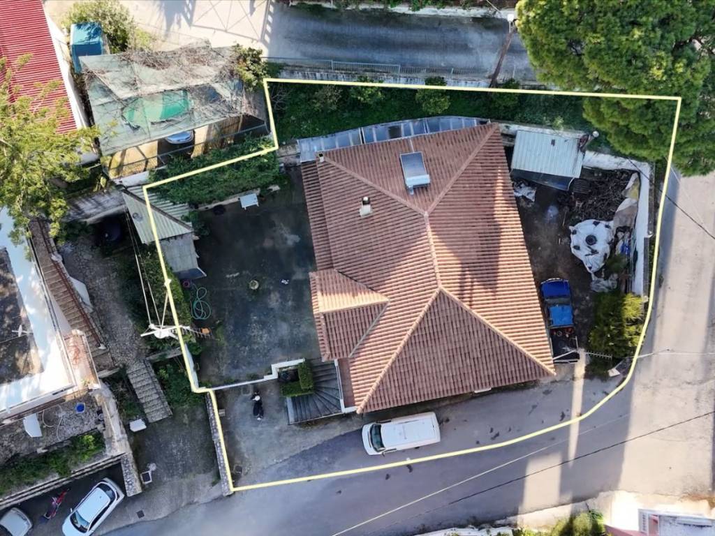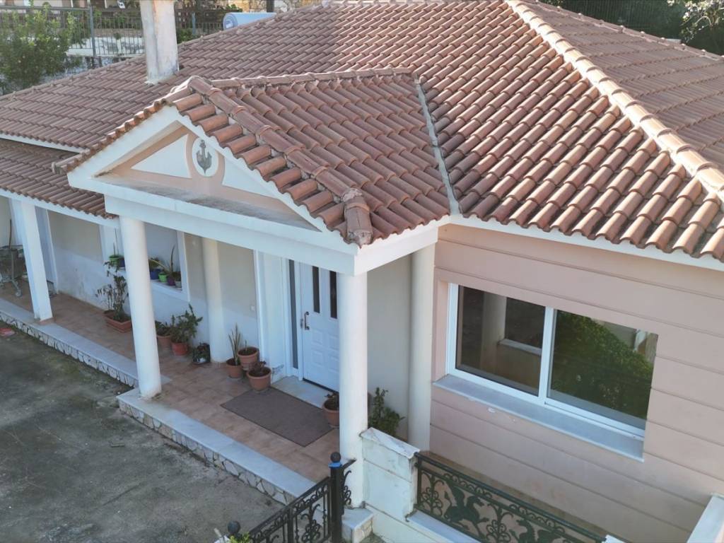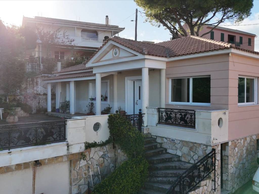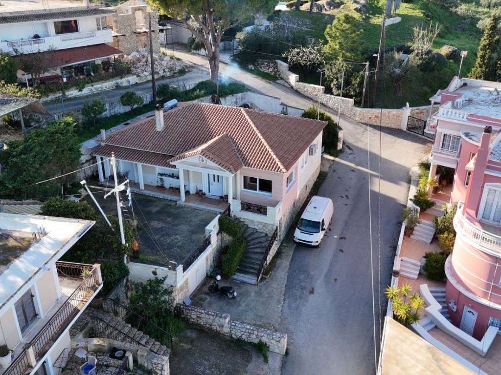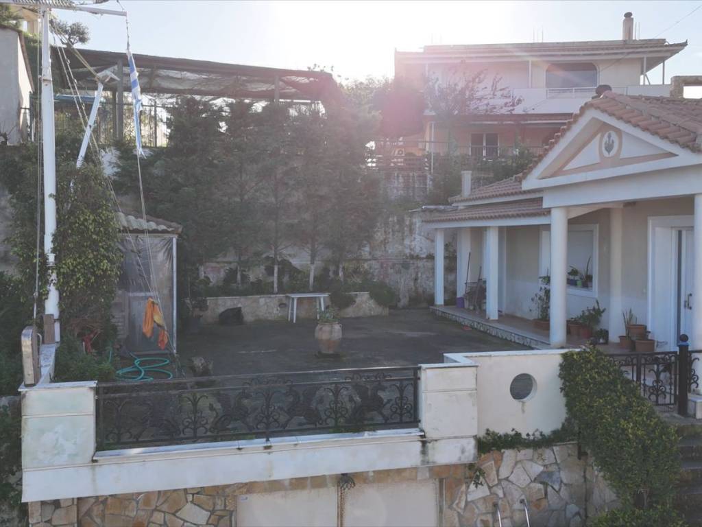 Detached house for sale in Argassi, Zakynthos, set on a 679 sq.m. plot in an excellent location with sea view and direct access to a public asphalt road network. The main residence has a total area of 175 sq.m. and is elevated in relation to the ground floor level. It consists of a spacious living room with fireplace, kitchen and dining area, three comfortable bedrooms, and two bathrooms. Due to the elevated position of the main house, the courtyard/veranda is formed above the garage roof, creating a large outdoor space ideal for relaxation and entertaining, while also enhancing privacy and sea views. The ground floor garage measures 70 sq.m. and can be converted into an independent residence or guest house, offering significant investment potential or additional living space. The property is in excellent condition and also features additional outdoor parking spaces, covered external storage areas, and an outdoor BBQ area. The surrounding space is functional and well arranged, making the property suitable for permanent residence, holiday home use, or investment.