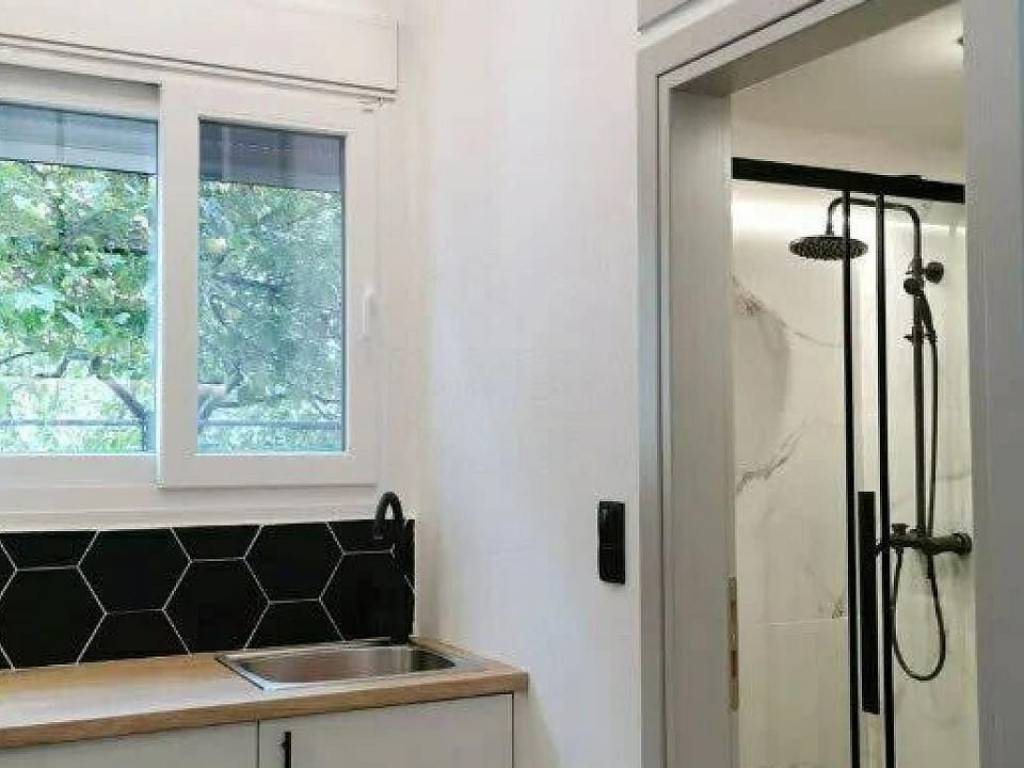 For sale in Peristeri: Renovated 30 sq.m apartment built in 1975 on the ground floor. Features 1 room, air-conditioning, and outdoor parking. Includes alarm, bathroom, fly screens, loft, and security door. Energy class C, with bright and furnished characteristics. Property ID: 1282.