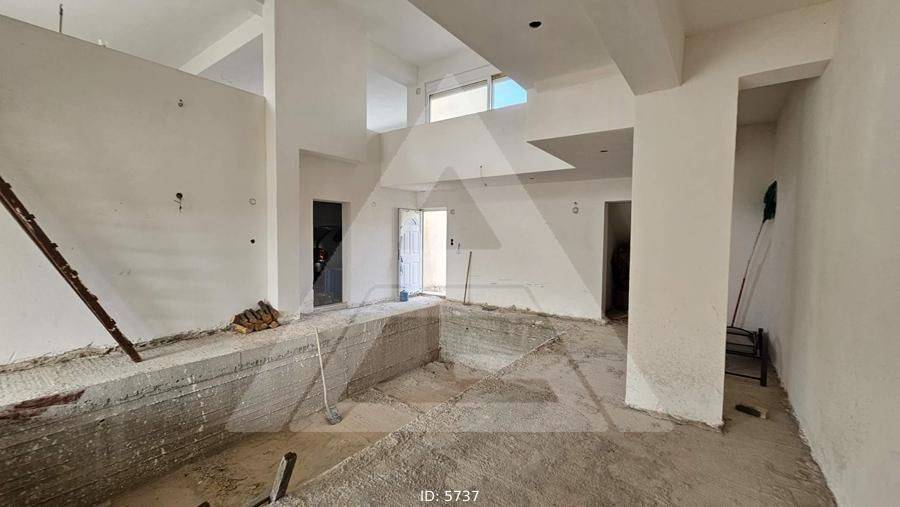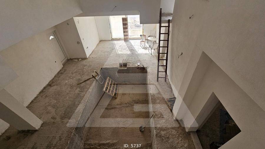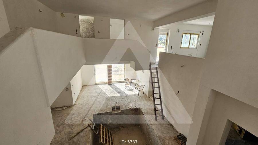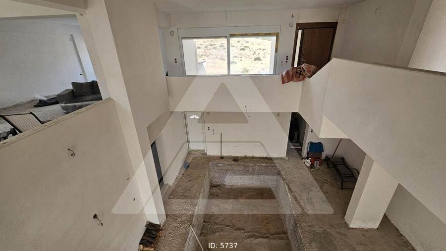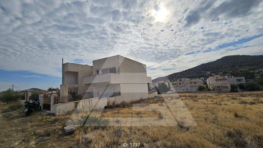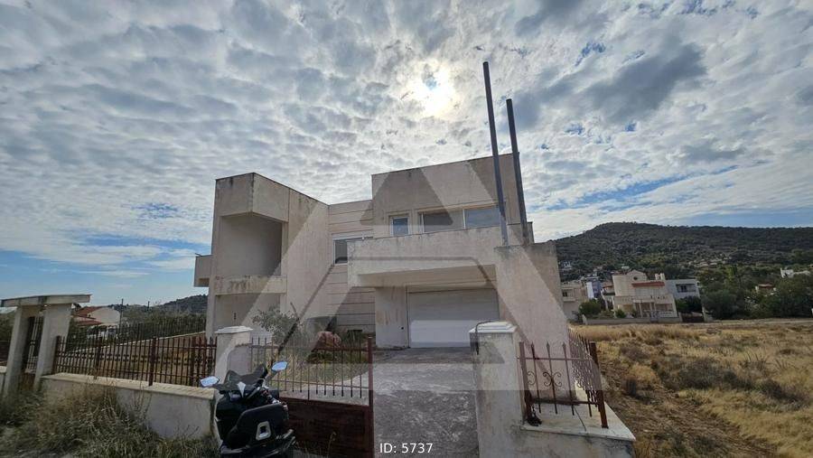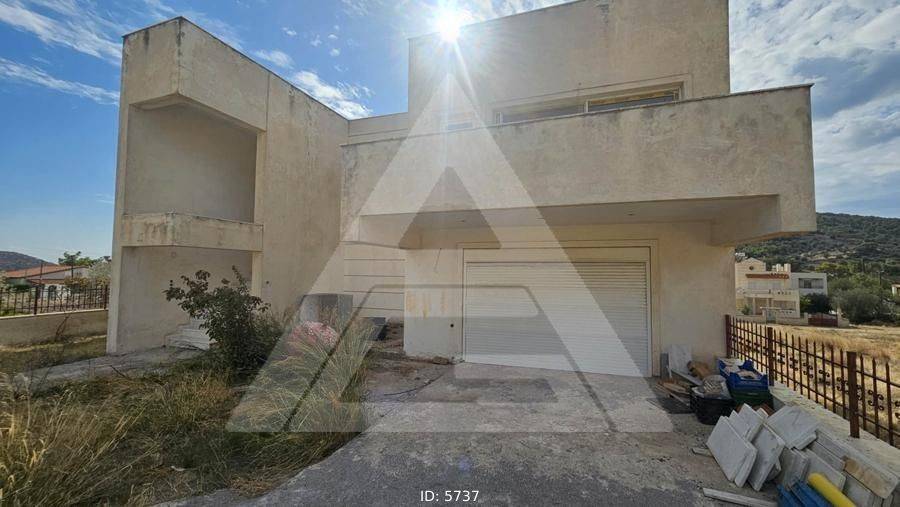 Salamina, Kaki Vigla - Detached House 500sqm plot 1150sqm, bedrooms 3, master bedroom, levels 3, basement - ground floor - 1st, under construction, year built 2010, energy class F, living room, kitchen, bathroom, wc, parking open space+covered, quiet, dual aspect apartment, luminous, corner, sea view, frontage, electric roller shutters, storage space, fireplace, balconies, large balconies, loft storage, garden, private terrace, aluminum frames, double glazed windows, door screen, separate kitchen, without common charges, secure door, alarm, luxurious, swimming pool, private pool, internal staircase, pets allowed, residential zone, east-southern orientation, access from dirt road, investment property.