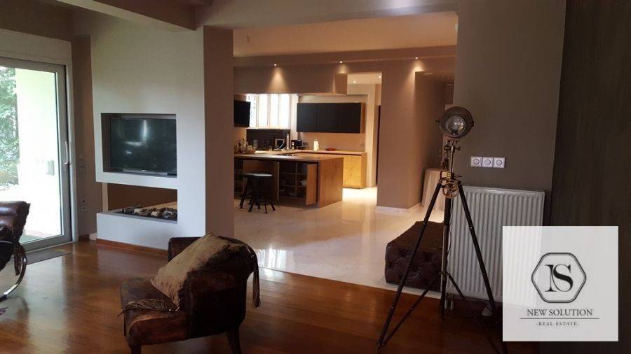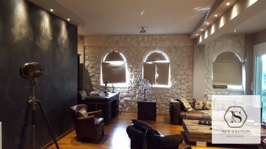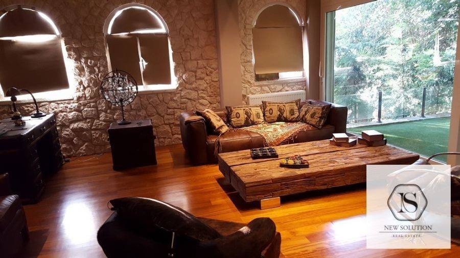 Agios Stefanos, Kentro, Apartment For Rent, 175 sq.m., Property Status: Very Good, Floor: Ground floor, 2 Bedrooms (1 Master), 1 Kitchen(s), 2 Bathroom(s), Heating: Autonomous - Petrol, View: Good, Building Year: 2000, Energy Certificate: C, 2 parking(s), Floor type: Wooden floors + Tiles, Type of door frames: Aluminum, Features: Security door, Security alarm, Storage room, Fireplace, Double Glazed Windows, Balconies, Roadside, Bright, AirConditioning, Grass, Back yard (Garden), Price: 1.600€. NEW SOLUTION REAL ESTATE, Tel: (+30) 210 9680099-(6944848414), email: info@newsolution.gr