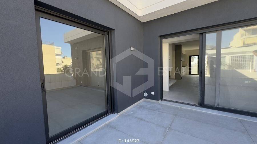 Elliniko, Ano Elliniko - Apartment 107sqm plot 1000sqm, unfurnished, bedrooms 3, levels 1, 2nd, excellent condition, year built 2024, energy class A+, living room, hall, kitchen, 2 bathrooms, heating type: autonomous (natural gas), parking open space, quiet, dual aspect apartment, luminous, unobstructed view view, frontage, painted, electric roller shutters, solar heater, fireplace, balconies, aluminum frames, double glazed windows, door screen, ceramic tiles floors, without common charges, night electricity discount rate, secure door, video doorbell, luxurious, within city plan, residential zone, southern orientation, access from asphalt, close to market (up to 500m), close to metro/train (up to 500m), close to school (up to 500m), close to entertainment (up to 500m).