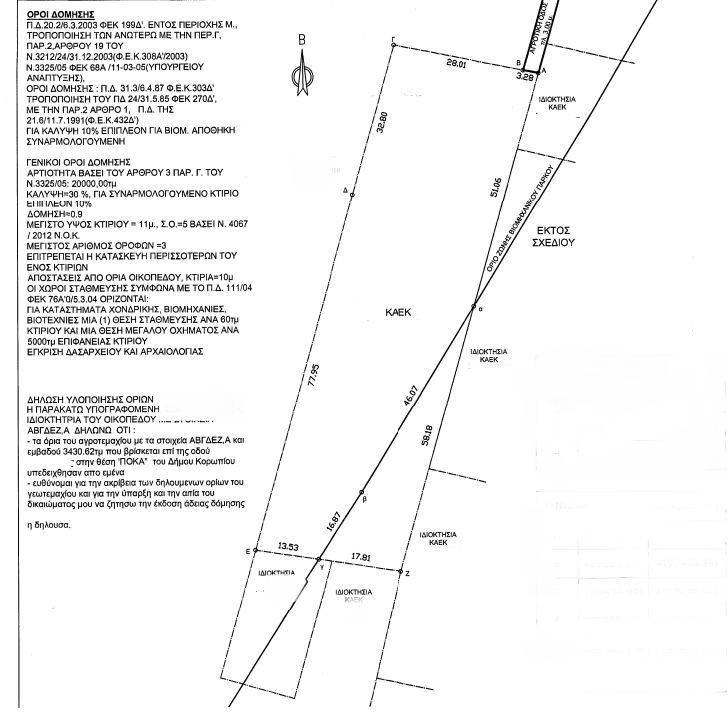 Κορωπί, διατίθεται προς πώληση βιομηχανικό οικόπεδο εμβαδού 3.430τμ. Τα 2.928τμ, βρίσκονται εντός Βιομηχανικής ζώνης (Μ). Οροι Δόμησης επί των τετραγωνικών μέτρων (2.928τμ) που βρίσκονται στην Βιομηχανική Ζώνη): Συντελεστής Δόμησης : 0.9 Ποσοστό Κάλυψης : 30% +10% για συναρμολογούμενη κατασκευή. Μέγιστο Υψος : 11μ (Οροφοι : 3) Τιμή: €400.000. ERGOROCK, Τηλέφωνο Επικοινωνίας: 2103225369, email: realestate@ergorock.gr, website: www.ergorock.gr