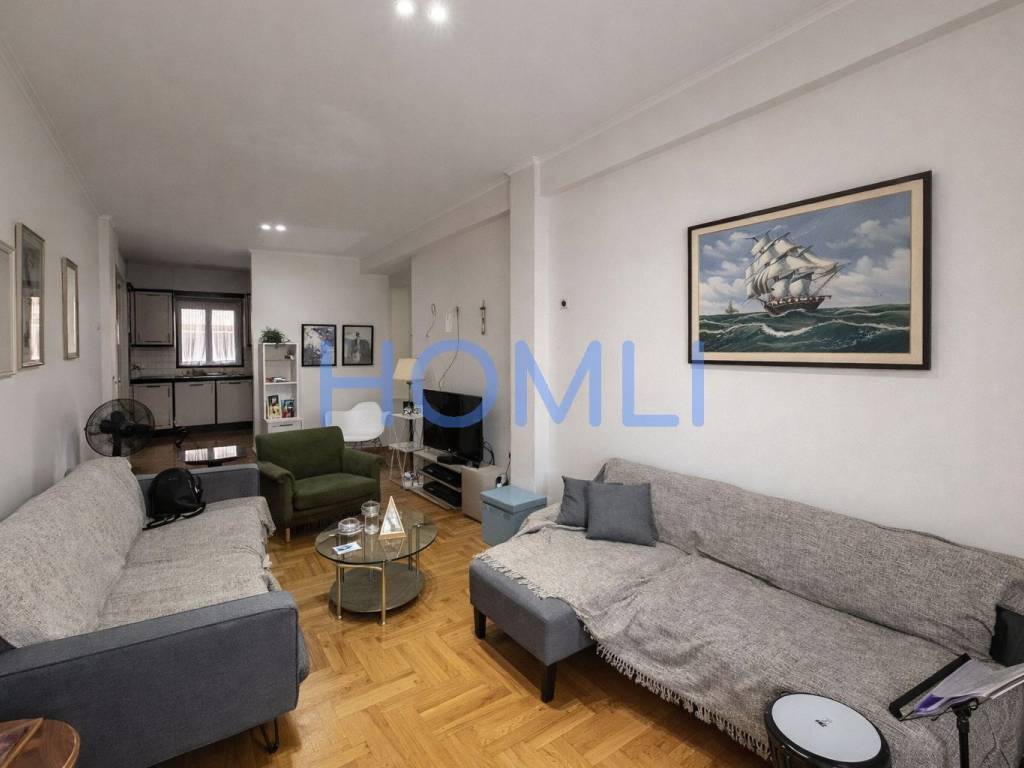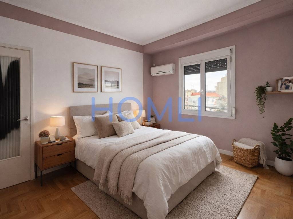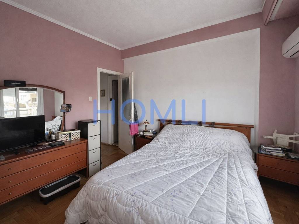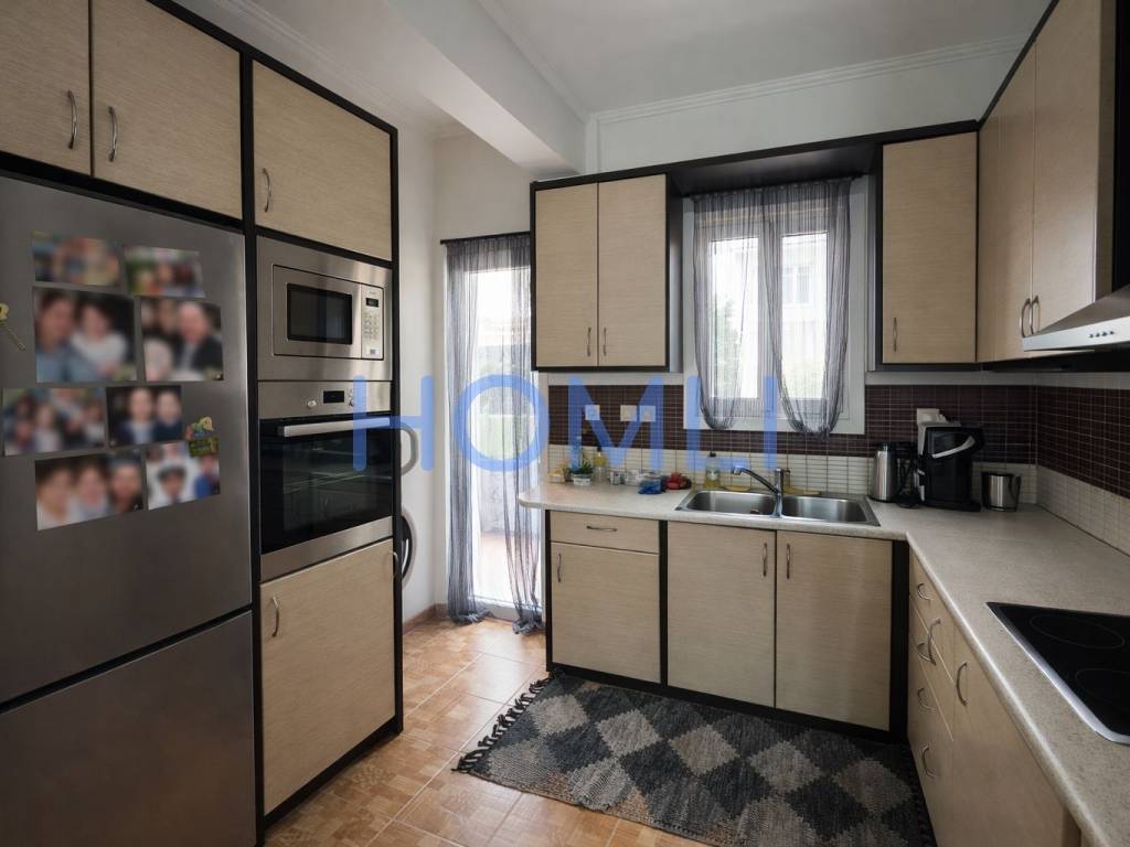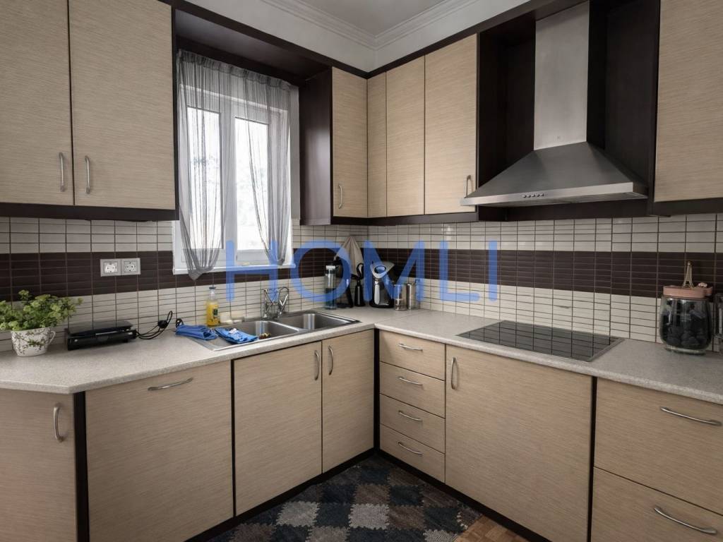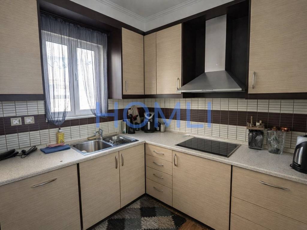 Fully furnished 80 sq.m. apartment on the 4th floor, airy, with modern design, comfortable spaces and unlimited views. It has two bedrooms, one bathroom and an excellent layout with bright and airy rooms. The kitchen is fully equipped with built-in electrical appliances, while the living room offers access to a balcony. Double glazing and sliding doors ensure sound insulation and thermal comfort. In addition, it has a solar water heater. The building has an elevator and central oil heating. It is located in a quiet neighborhood, close to a school, making it an ideal choice for a permanent residence or investment. HOMLI, property code 27820. Contact us at 210 444 6498 for more information or to schedule a visit.