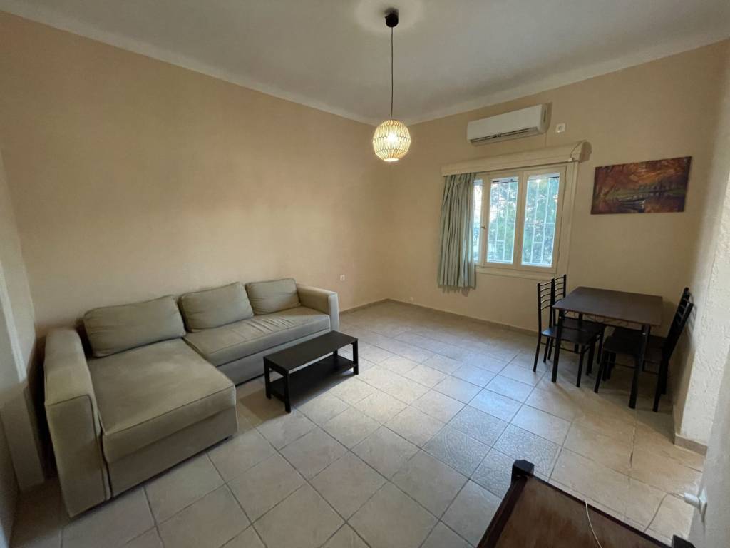 The apartment is located in a duplex and is the only one on the floor. It is an elevated ground floor which is essentially like being on the first floor of an apartment building. It has no extra fees and has a view of the Attic grove (Tourkovounia). It has all the electrical appliances (kitchen, fridge-freezer, washing machine and two air conditioners). The neighborhood is quiet and is located on the Elikonos hill on the border with Galatsi. Nearby there is a supermarket, pharmacy, etc. In addition, it serves students who want to study at the Athens University of Economics.