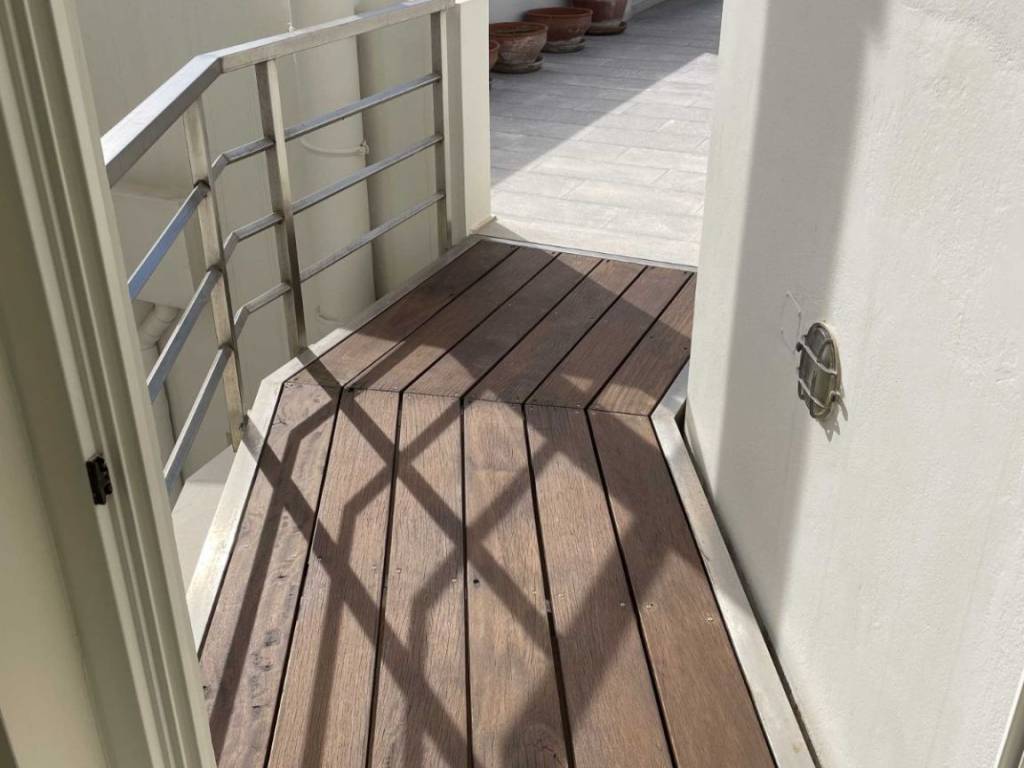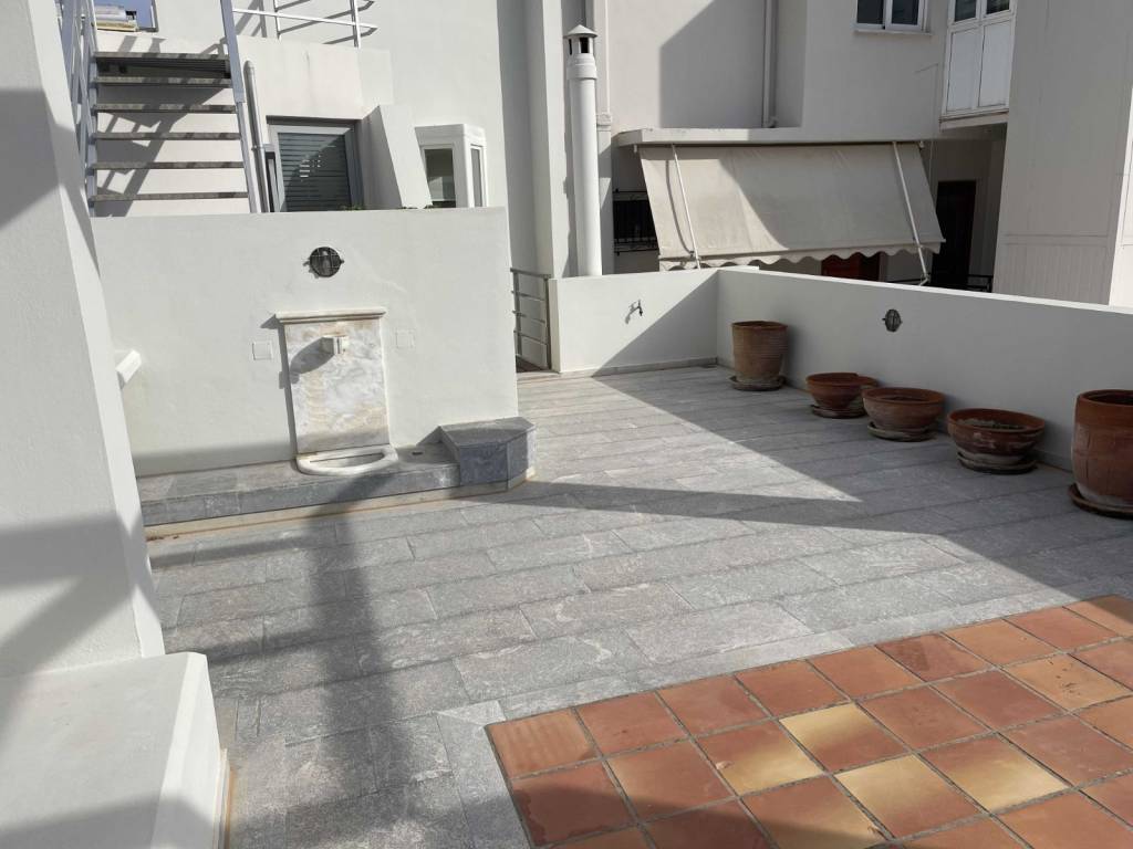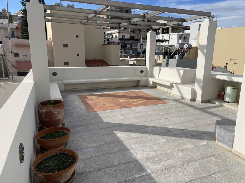 Penthouse cross-ventilated apartment with excellent construction quality and premium furnishings, available for long-term rental. The apartment enjoys abundant natural light throughout the day. Private balcony with wooden deck and stainless steel bridge access to a large 50 sq.m. rear terrace with pergola — ideal for everyday use year-round. Views of the city and the sea in the distance. Fireplace for cozy winter evenings. Premium equipment: built-in Miele oven & dishwasher, built-in Bosch refrigerator, microwave oven, solid oak kitchen cabinets & wardrobes, washing machine, Coco-Mat bed with brand new mattress, solar water heater, marble bathroom. Central location within walking distance of all amenities. Quiet neighbourhood, ideal for a couple or small family. Phone calls welcome: 10:00–13:00, weekdays.