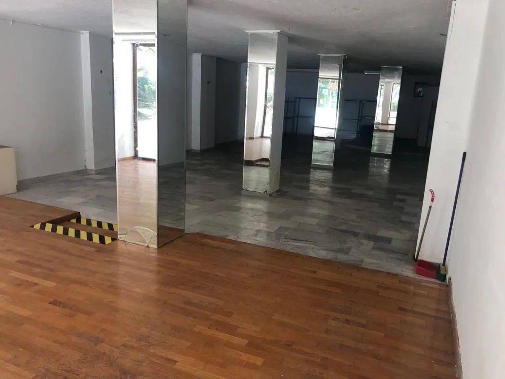 Κατάστημα για ενοικίαση - Παλαιό Φάληρο, η είσοδος είναι με ξύλο στο πάτωμα και μετά όλος ο χώρος είναι στρωμένος με άσπρα-γκρι μάρμαρο και καθρέπτες. Ανοικτός χώρος χωρίς εμπόδια και αρκετά φαρδύς ώστε να μπουν ράφια από όλες τις πλευρές. Έχει μια μικρή κουζίνα, μπάνιο και κλιματισμό. Επίσης έχει ωραίες βιτρίνες με ξύλινο τελείωμα και ρολά ασφαλείας. Υπάρχει χρήσιμος φωτισμός και αρκετά φωτεινό. Μπροστά από τις βιτρίνες υπάρχει αρκετά όμορφος και ευρύχωρος χώρος με άσπρα μάρμαρα.