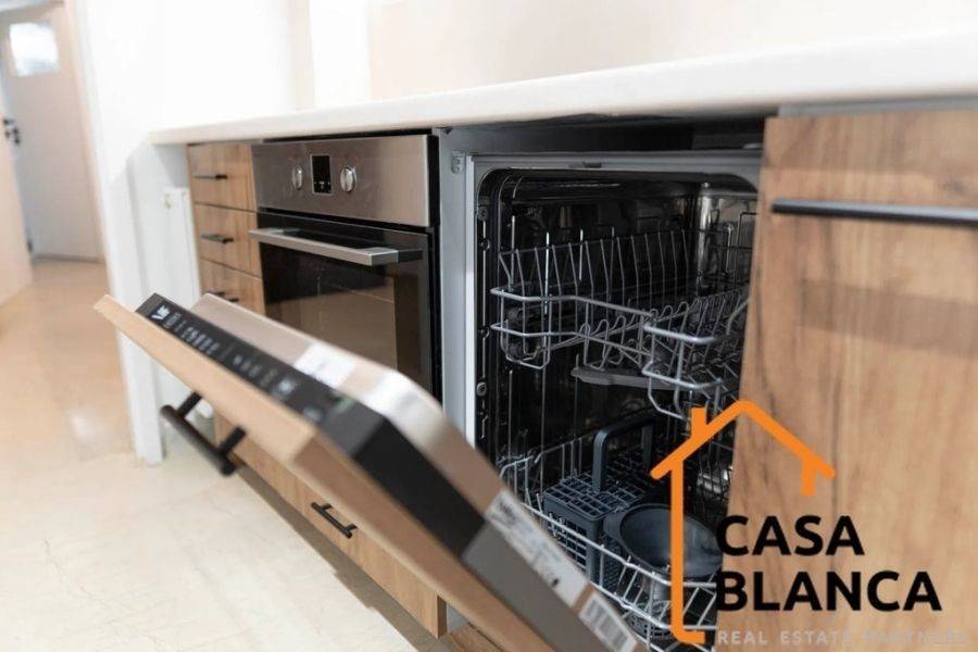 For Rent Apartment, Nea Smyrni, Kentro, 55 sq.m., 1rst Floor, 1 Bedrooms, 1 Bathrooms, 1 Κitchen/s, Floors: Marble, Dours: Aluminum, Building Year: 1977, Status: Amazing, Certificate Energy: C, Feautures: Elevator, Security door, CCTV, Electric Appliances, Double Glazed Windows, Window Screens, Pets Allowed, Furnished, Bright, AirConditioning, Painted, Renovated, Central - Natural Gas Heating, Price: 800€.