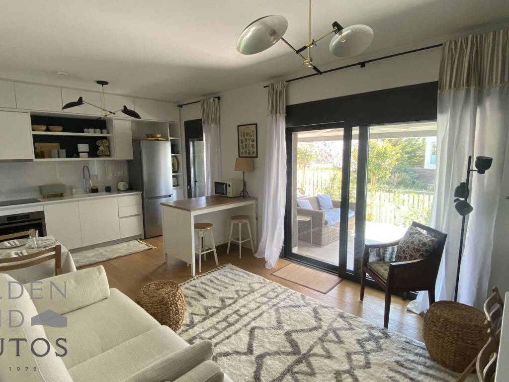 This charming 47 sq.m. ground-floor apartment in the heart of Voula offers a perfectly designed, practical living space just 500 meters from the sea and within walking distance of the central market. The residence features a cozy living room with an open-plan kitchen, one comfortable bedroom with built-in wardrobes, and a modern bathroom. Every detail has been thoughtfully considered, with fully equipped and furnished interiors, including handmade kitchen and bathroom furniture that adds a bespoke, artisanal touch. A standout feature of the property is its delightful 150 sq.m. private garden, providing a serene space to relax or entertain family and friends, with the added potential to install a small swimming pool. The apartment is newly built and designed for modern comfort, equipped with an autonomous underfloor heating system, fan coil air conditioning, solar water heater, and energy-efficient double-glazed windows, earning it a B+ energy certificate. The interiors are enhanced by elegant oak wooden flooring, window awnings, mosquito screens, and full furnishings, while additional amenities include one open parking space with a charger supply, an elevator, alarm system, and satellite antenna. Situated on a corner plot with a well-maintained façade, this property combines practicality, comfort, and a touch of luxury in a prime seaside location, offering an ideal opportunity for those seeking a cozy, stylish, and move-in-ready home in Voula.