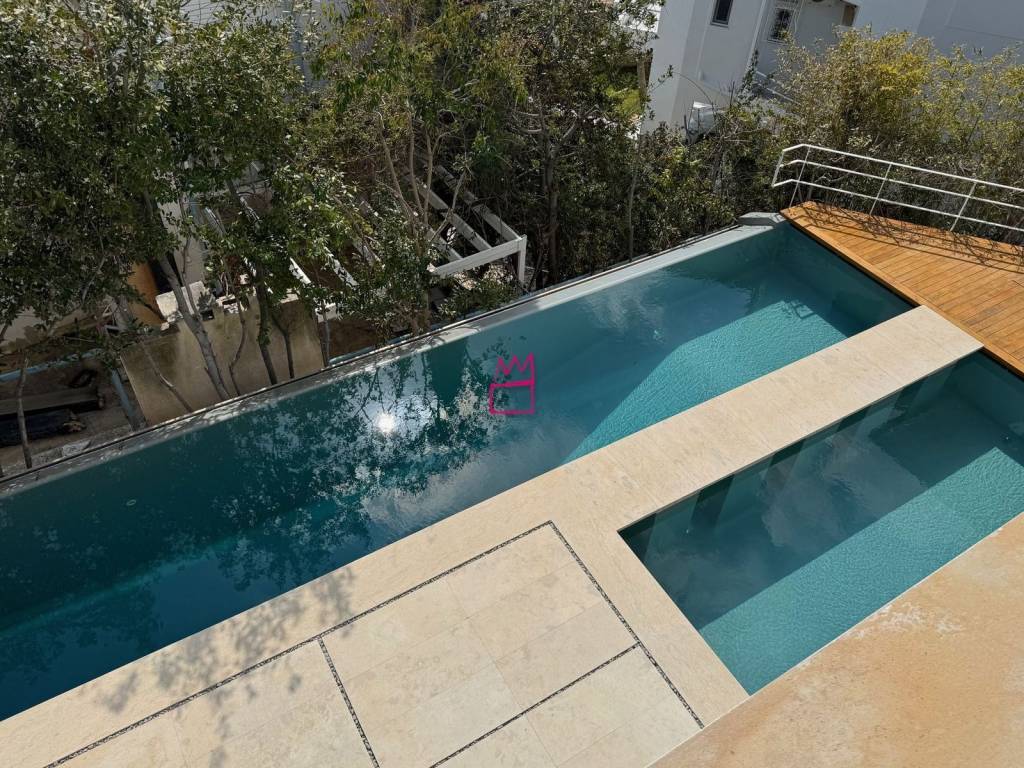 Voula – Kalymniakia | Iconic 590 sq.m. Sea View Villa | Athenian Riviera Set in the prestigious enclave of Kalymniakia in Voula, this exceptional 590 sq.m. villa enjoys panoramic, unobstructed sea views and absolute privacy, on a 650 sq.m. plot. Built in 2004 and arranged over three levels (basement, ground floor and first floor), the residence combines generous proportions with refined living spaces and seamless indoor-outdoor flow. The property offers: 5 spacious en-suite bedrooms Elegant living and dining areas with fireplace Fully equipped contemporary kitchen Playroom & auxiliary areas Elevator serving all levels Storage rooms Outdoors, a beautifully landscaped garden surrounds the private swimming pool, while expansive verandas capture the breathtaking views of the Aegean, creating an ideal setting for entertaining and relaxation. Additional Features: Closed garage for 4 vehicles Double glazing Security door Alarm system An outstanding opportunity to acquire a prime residence in one of the most exclusive locations of the Athenian Riviera.