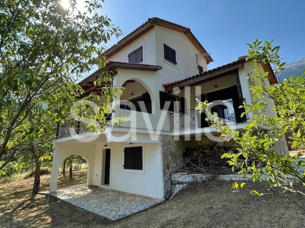 LAMPEIAS, N/A 140 sq.m. in 1.780 sq.m. plot, ground floor, year of construction 1996, 4 b/r, fireplace, 3 bathrooms, heating n/a, with energy class N/A, double glazing, security door, veranda, garden, 4 open garages, price 225.000€, code 6673