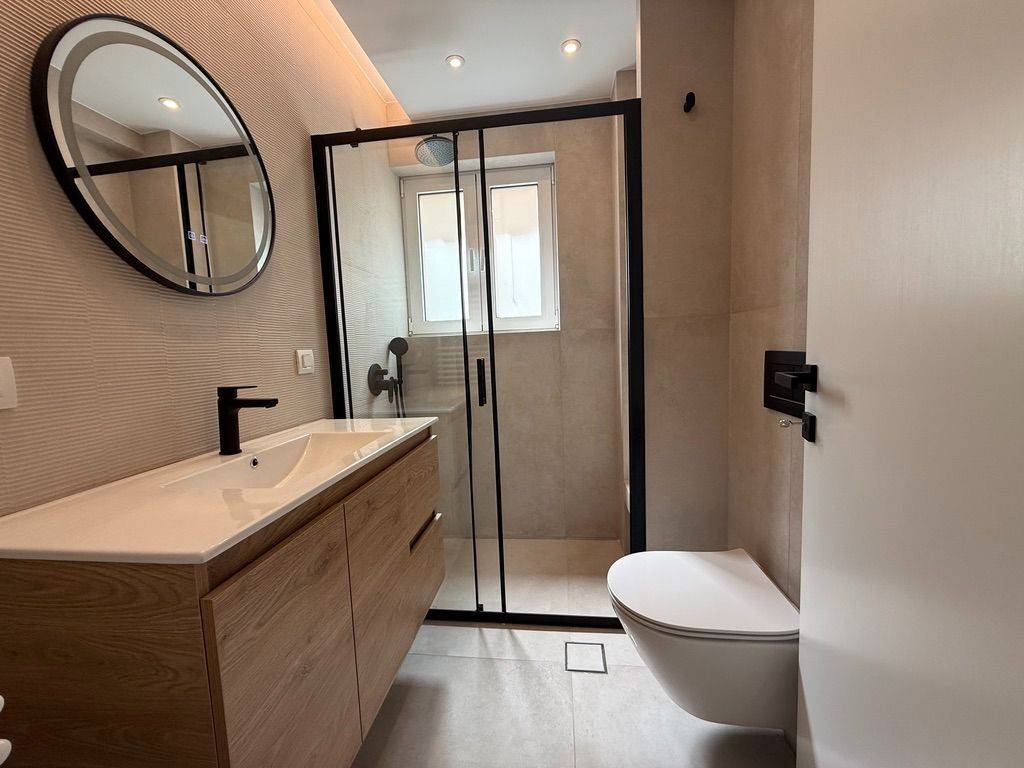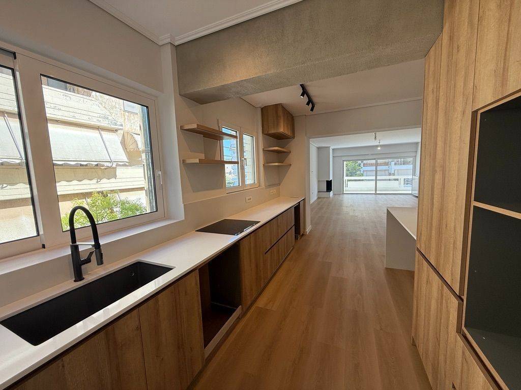 A fully renovated apartment near Glyfada Golf for rent. It offers a large reception area with direct access to the terrace, a beautiful fully equipped with appliances open plan kitchen, four bedrooms, two modern bathrooms and a fully equipped laundry room with washer and dryer. The interior features beautiful wooden floors, air conditioning throughout and a fire place. The property also includes private parking, and access to a very nice garden. Ideally located in a quiet and sought-after area, this apartment is perfect for those looking for proximity to Glyfada center, comfort and convenience. Could be furnished at an extra cost.