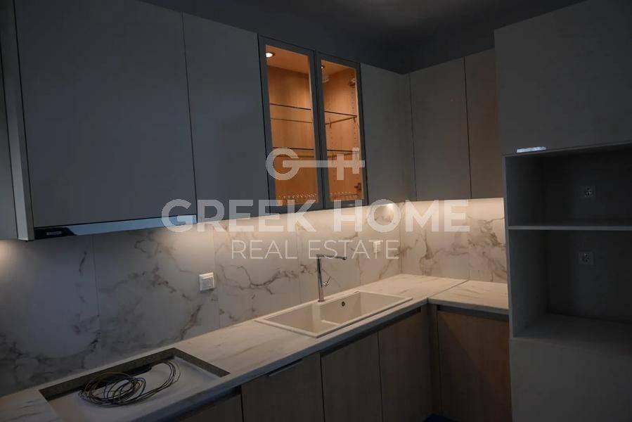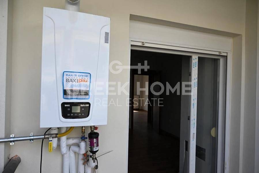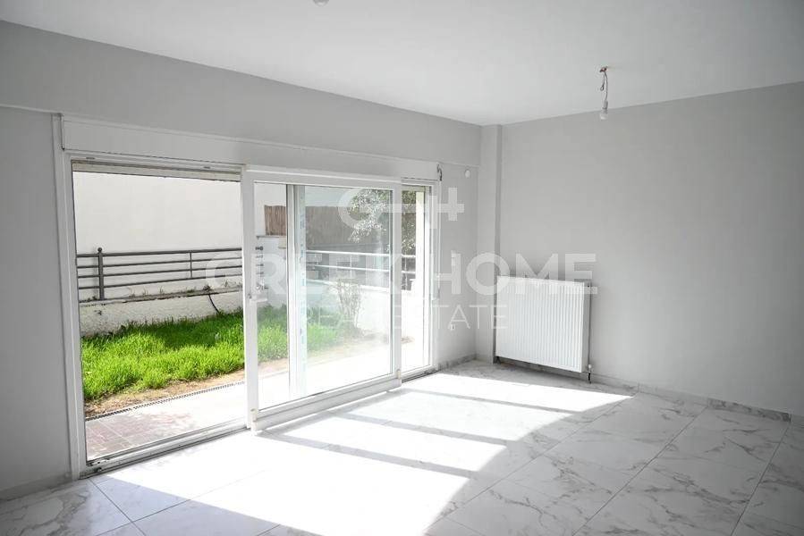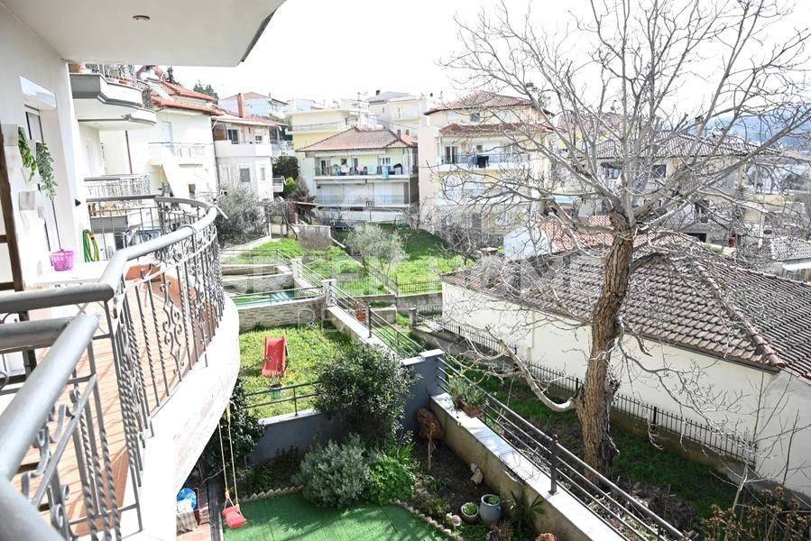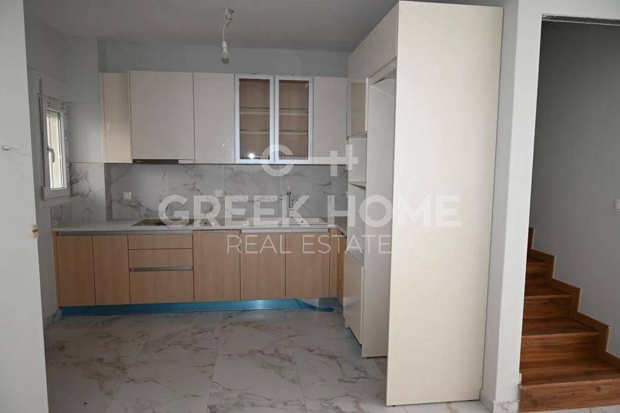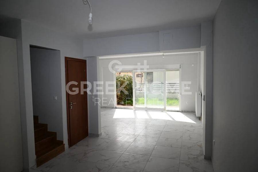 Hortiatis, Filyro - Full floor Maisonette 110sqm unfurnished, bedrooms 3, levels 2, ground floor - 1st, renovated, year built 2008, renovation year 2026, energy class E, living room, hall, kitchen, bathroom, wc, heating type: autonomous (natural gas), parking covered, quiet, dual aspect apartment, luminous, unobstructed view, frontage, storage space 9sqm, balconies, garden, garden 28sqm, aluminum frames, double glazed windows, door screen, ceramic tiles floors, secure door, alarm, video doorbell, internal staircase, pets allowed, southern orientation, close to school (up to 200m).