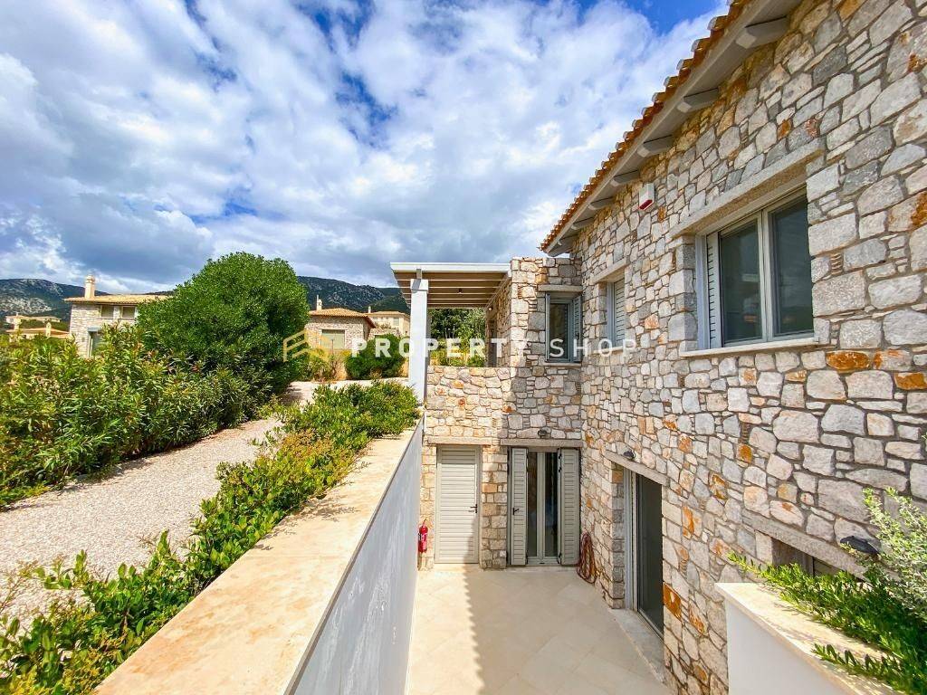 Ref. Code: SA565 Villa 150 sq.m. | 4 Bed | 2 Bath A Luxurious Retreat Amidst the Scenic Landscapes of Salanti This elegant two-level villa spans 150 sq.m. and sits on a 1,018 sq.m. plot. The main living space features a spacious living room with a fireplace, a fully equipped open-plan kitchen, and dining area. A visible wooden ceiling adds character to the interior, while French doors open onto a covered veranda with an outdoor dining area, offering stunning sea views and direct access to the private swimming pool (32 sq. m.). At the back of this level, there is one bedroom and one bathroom. In total, the villa offers four stylishly furnished bedrooms, each with built-in wardrobes and tasteful décor. There are two modern bathrooms, one on each floor, as well as air conditioning in the bedrooms. Exterior The garden is beautifully landscaped with lawn, mature trees, colorful flowers and paved walkways. The outdoor space includes a swimming pool, shaded verandas with pergolas, stone wall accents and a private parking space with paved access. Additional Features Air conditioning, ceiling fans, storage room, large openings, fully furnished and equipped, fireplace, landscaped garden, stone paving around the house, and exclusive land use rights. Design The villa’s architecture blends traditional elements with modern comforts, using high-quality materials and sustainable construction methods. A bioclimatic approach ensures year-round comfort by optimizing orientation, light and natural airflow. Location Set within a 76,000 sq.m. hillside development among villas of similar aesthetic, the property enjoys sweeping views of sixteen crystal-clear beaches. Surrounded by lush forests and the blue of the Argolic Gulf, it is naturally protected from northern winds by Mount Didyma, offering a mild climate year-round. Part of the renowned Greek Riviera, the area is a favored destination among prominent Greek shipowners. The villa is easily accessible—just 2.5 hours from Athens—and close to historic and cosmopolitan locations such as Epidaurus, Mycenae, Spetses, Hydra, and Porto Heli. A Beachfront Heaven Wake up to the calming sound of the sea and the soft touch of the Mediterranean breeze. With unobstructed sea views and just 300 meters from pristine beaches, this location is perfect for a peaceful escape. A Thriving Future Major investments are transforming the area, most notably the €266 million redevelopment of the historic Saladi Beach Hotel into a luxury 5-star resort. The project includes 203 hotel rooms, 167 bungalows, 170 residences, a wellness spa, conference center, and restaurants—boosting the region’s prestige and property values. Embrace Nature and Privacy Surrounded by lush landscapes and olive groves, the property offers complete privacy—an ideal retreat from the pace of everyday life. Distances – Beach: 240 m – Athens: 2.5 hours – Porto Heli: 35 minutes – Nafplio old town: 1 hour 15 minutes – Hydrofoil (Piraeus – Porto Heli): From 1 hour 50 minutes Disclaimer: This property information is based on the data provided by the owners. Our company is not responsible for possible inaccuracies in the information. For visits to the properties, identification/passport is required. The locations of the properties on the map are approximate. For the indication of the property it is necessary to show your identity card and your VAT number, and the signature of the corresponding form according to Law 4072/11-04-2012 (Government Gazette 86 A). Real Estate Agency PROPERTY SHOP GREECE Tel: 27520 58282 | Asklipiou 66 Nafplio 21100 Property Agent Aspasia Athinaiou | aspasia@propertyshop.gr | +30 694 5154 189 For more information visit our website: www.propertyshop.gr