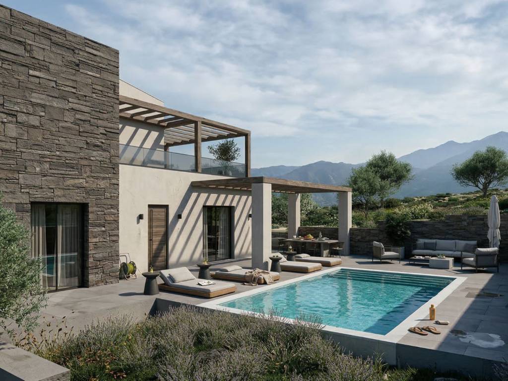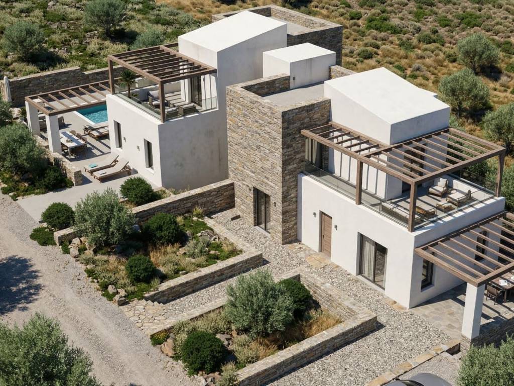 Golden Visa approved property! In a peaceful countryside setting in the wider Exantis area of Rethymno, two newly built stone residences are being offered for sale as part of a high-quality development by EXADAS, a local company with strong experience in real estate and construction in Crete. This carefully designed project combines contemporary architecture with the timeless character of natural stone, creating homes with strong identity, elegant proportions and a true connection to the Cretan landscape. Each residence is arranged over two levels and offers 3 bedrooms, 2 bathrooms, and a bright open-plan living room and kitchen area, while each home also enjoys its own private swimming pool, terraces, pergolas and beautifully designed outdoor living areas. On the ground floor of each residence there is a large oren space with kitchen - dining room - living room, one bedroom and one bathroom, while one the first floor there are two bedrooms and a bathroom. The first floor of the each residence also has a large balcony with views of Psiloritis mountains and the wider area, an ideal spot for relaxation with family or friends. The specific property is to be built and is expected to be completed in 16 months. The houses are built to the highest and modern standards in terms of safety, energy saving and construction quality. The houses has special architectural elements, combining the modern with the traditional and will be constructed with a mix of white local stone and traditional plastering in order to be blend with the surroundings. The two villas will be delivered fully equipped, as far as the main electrical appliances are also included. One of the project’s strongest assets is the amount of outdoor space available. Each residence enjoys approximately 1,300 sq.m. of plot area for exclusive use, offering a rare sense of openness, privacy and independence. This gives the development a true countryside character and adds substantial value for buyers seeking space, comfort and a stronger connection to the natural surroundings. The location further enhances the value of the development. The villas are set in the countryside near Exantis, surrounded by nature and offering a peaceful and authentic Cretan environment. At the same time, they enjoy easy access to two of the most popular seaside villages in the region, Bali and Panormo, both known for their beautiful beaches, relaxed atmosphere, tavernas, cafés and appealing coastal lifestyle. The sea is approximately 3 km from the properties, offering an ideal balance between rural tranquility and coastal accessibility. This means owners can enjoy privacy, natural surroundings and a true countryside setting, while remaining only minutes away from beaches and seaside amenities. These residences are ideal either for individual purchase, for use as luxury private homes or holiday villas, or as a combined premium investment opportunity in one of the most desirable areas of North Crete. Developed and constructed by EXADAS, with proven activity in the wider area, the project combines architectural quality, local knowledge and a location of genuine appeal. Showcase of recent construction projects by Exantas Real Estate: https://drive.google.com/drive/folders/18kLcbQKsNy8gZdH28A5dMnLj4oLWTyR1?usp=sharing