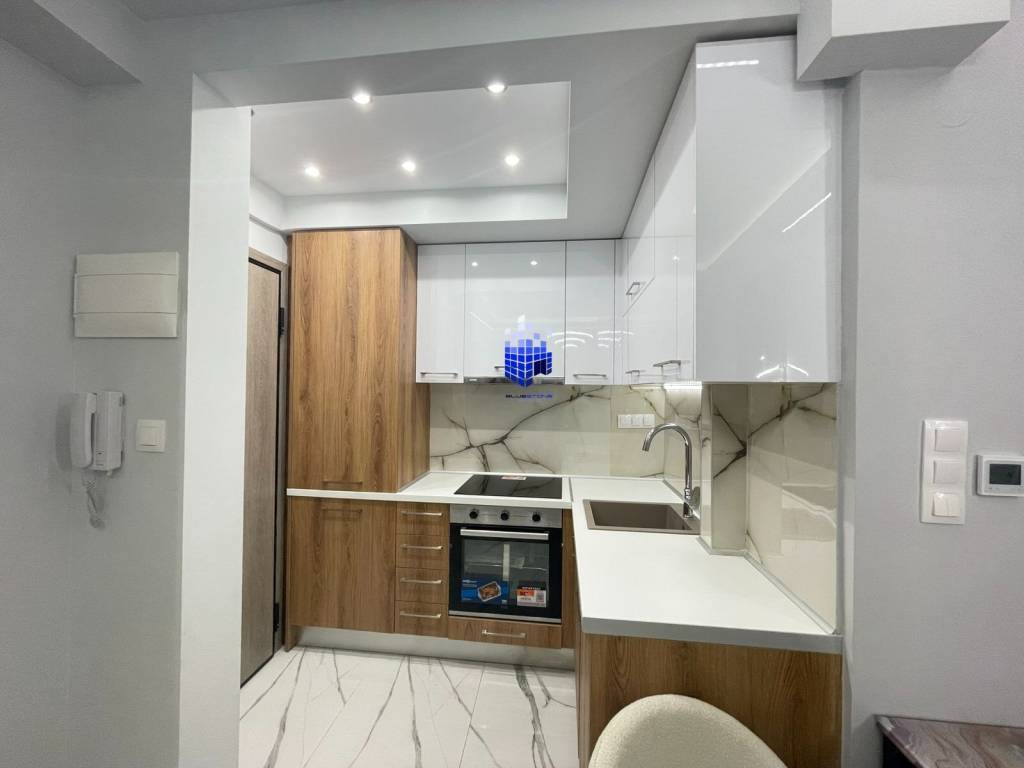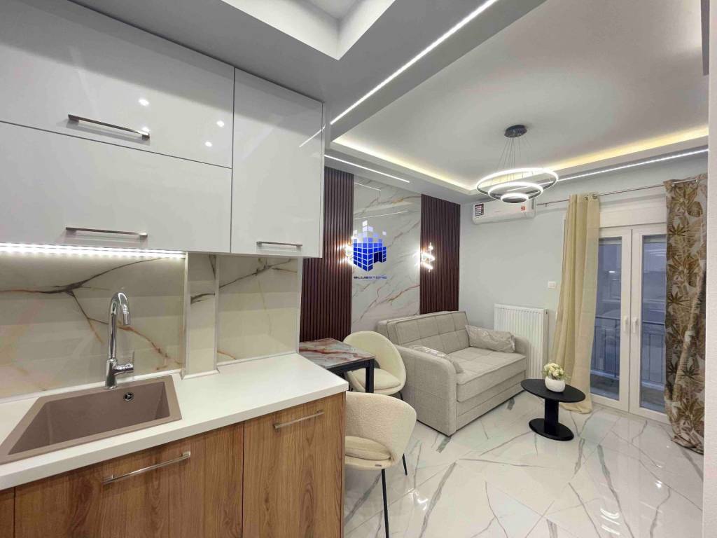 A fully renovated 34 m² studio apartment is available for sale in Agia Triada, in eastern Thessaloniki. It is a first-floor apartment. It consists of a living room-kitchen, a bedroom, a bathroom, and two balconies totaling 4 sq.m. The property is delivered fully equipped with electrical appliances and fully furnished. It has a security door, synthetic double-glazed windows, screens, and tiled floors. It also has independent natural gas heating and new technology air conditioning. The property is located in a quiet neighborhood, but next to a commercial area. It is close to public transportation, with multiple bus and metro stops nearby. Specifically, it is 4 minutes from the Papafi metro station and 10 minutes from the universities. It is also next to the beach of Thessaloniki, just 8 minutes away. The property is an excellent choice for exploitation with particularly high returns. You can visit our website: http://www.bluestonerealty.gr to be immediately informed about our new properties. *When viewing the property, you must provide your ID and tax identification number in accordance with Law 4072/2012. *The exact location on the map does not correspond to the actual location of the property.