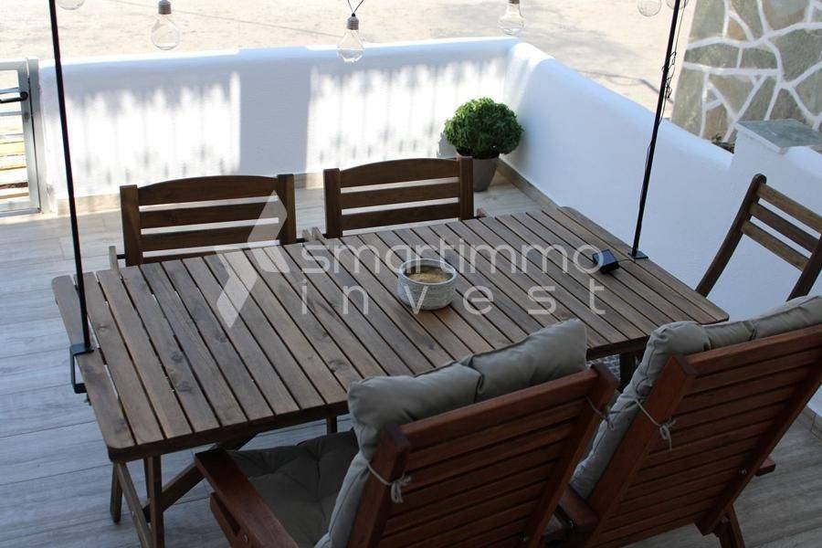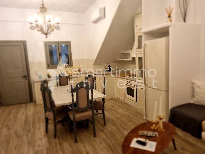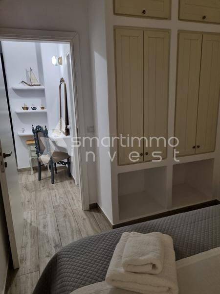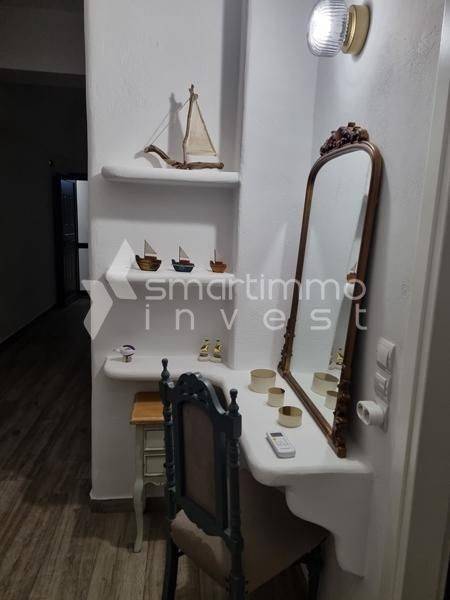 Am Eingang der traditionellen Ortschaft Dryopida auf Kythnos wird eine besonders geschmackvolle, komplett renovierte Wohnung mit 63 m² zum Verkauf angeboten, die authentische kykladische Ästhetik mit modernem Komfort verbindet. Die Wohnung befindet sich im Erdgeschoss eines Wohnhauses und umfasst ein komfortables Schlafzimmer, ein modernes Badezimmer sowie einen offen gestalteten Wohn-, Küchen- und Essbereich, die einen angenehmen und funktionalen Lebensraum für den Alltag schaffen. Das Gebäude wurde 1995 errichtet und 2021 vollständig renoviert; es bietet moderne Wohnstandards, Energieklasse A und durchgehend hervorragende Optik. Aluminiumrahmen, geflieste Böden, Klimaanlage(n) und sorgfältig ausgewählte Ausstattungsdetails sorgen ganzjährig für Komfort. Die Immobilie wird vollständig möbliert und ausgestattet, genau wie auf den Fotos, angeboten und ist somit sofort beziehbar oder bereit für die touristische Vermietung. Die Lage am Ortseingang von Dryopida ermöglicht einfachen Zugang zum malerischen Dorf mit seinen traditionellen Gassen, örtlichen Geschäften und Tavernen; zugleich sind einige der schönsten Strände Kythnos nur eine kurze Entfernung entfernt. Sie ist sowohl als Ferienwohnung als auch als Investitionsmöglichkeit auf einer der ursprünglichsten und vielversprechendsten Inseln der Kykladen hervorragend geeignet.