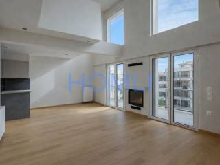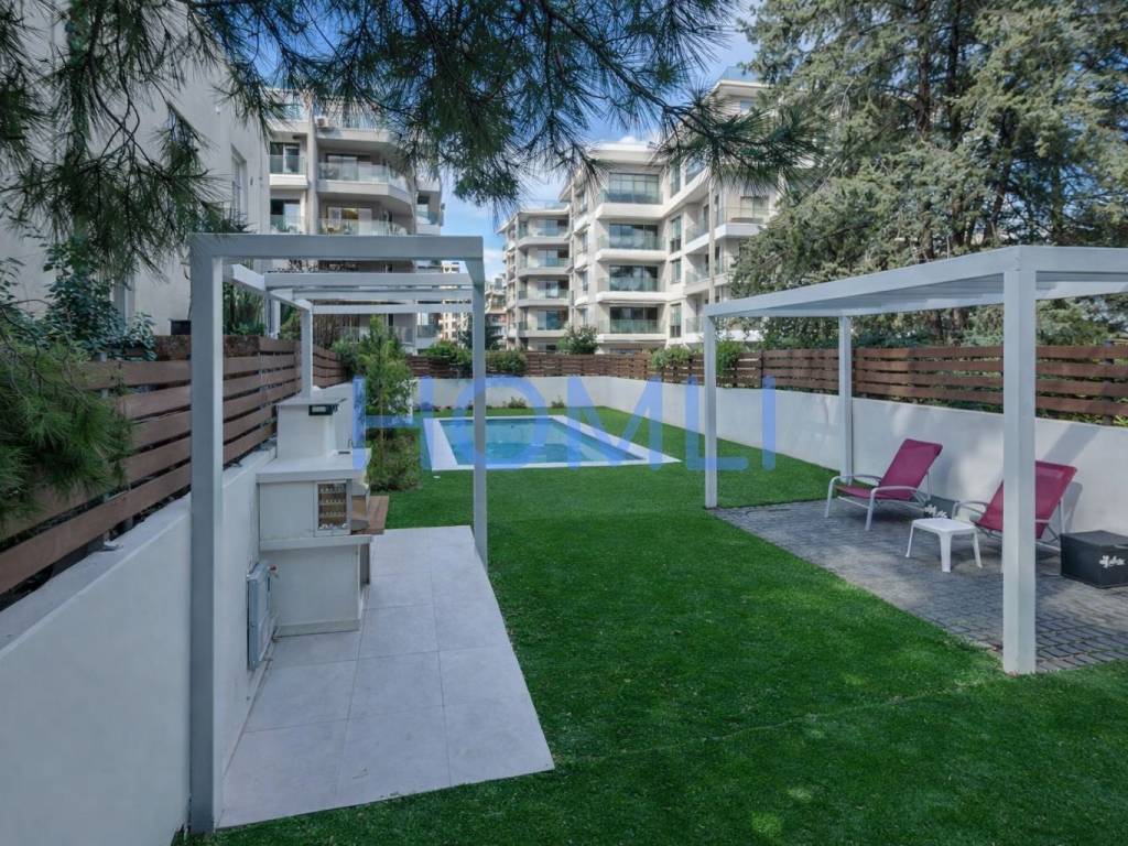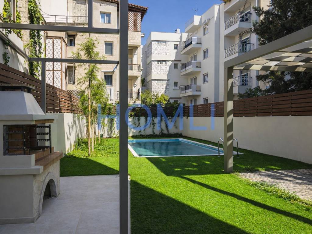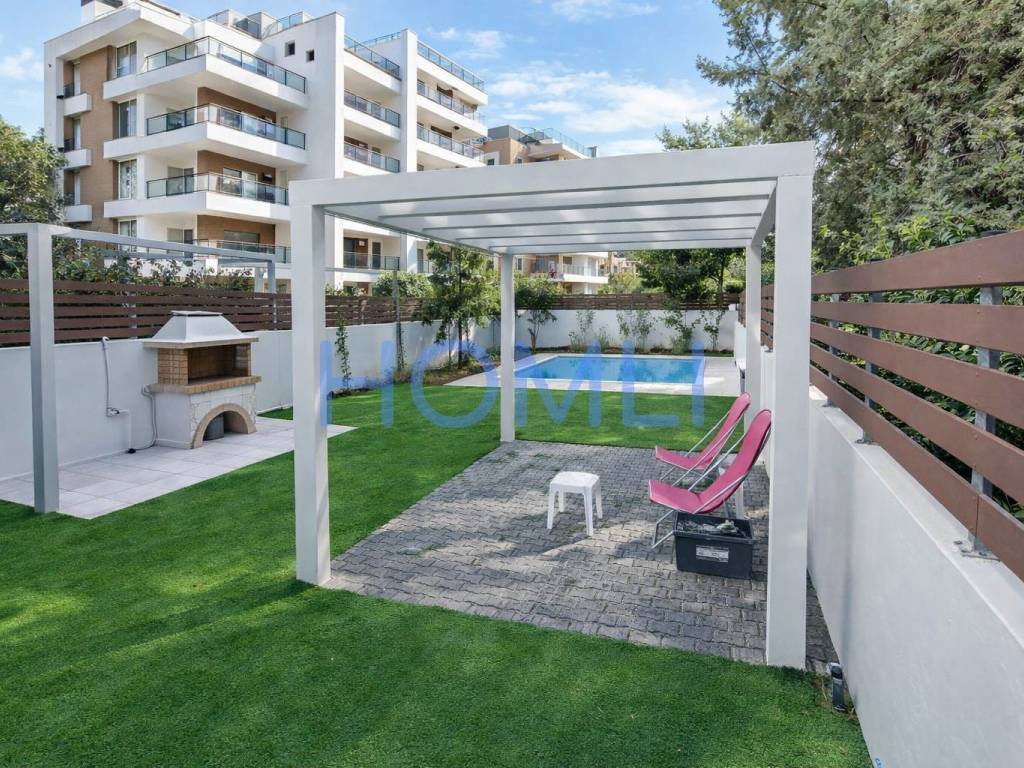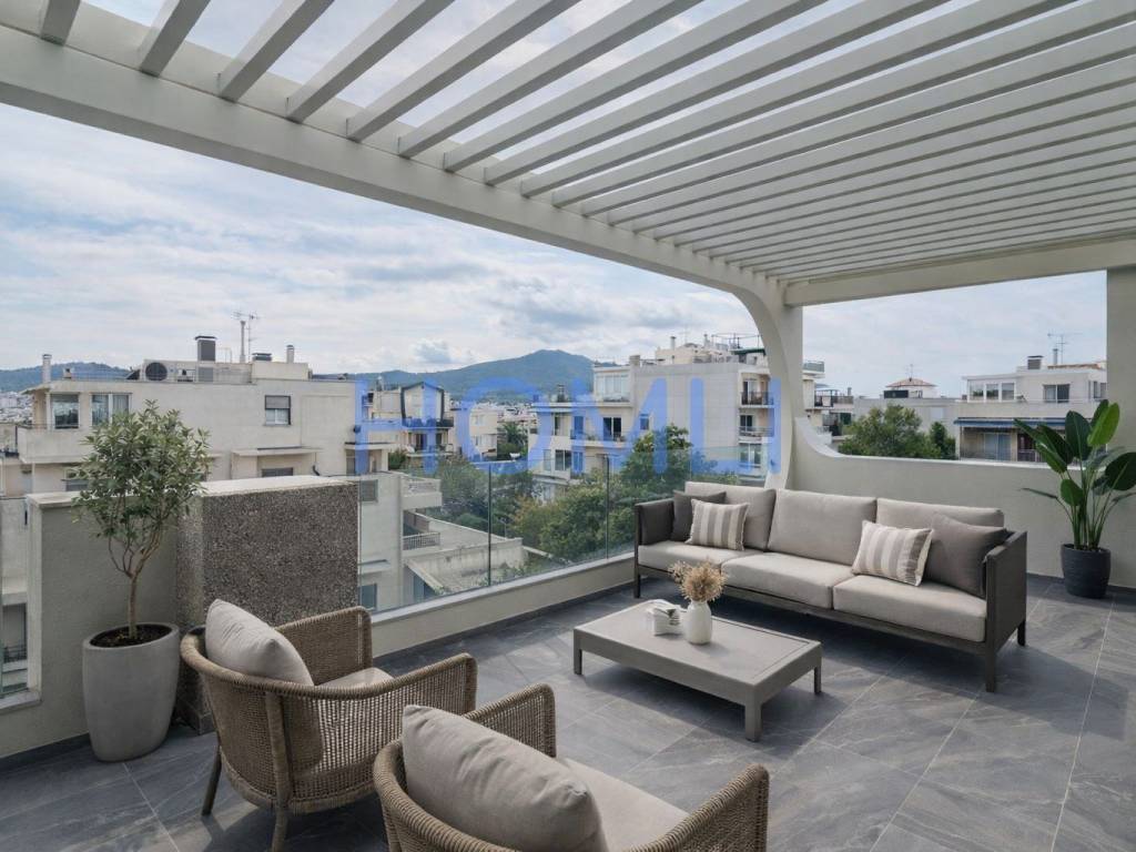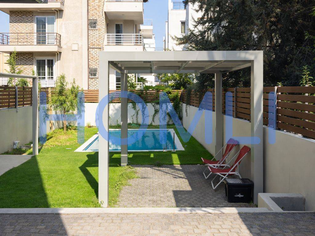 Excellent newly built penthouse maisonette with 2 parking spaces and a shared garden with a swimming pool. It extends over the 4th - 5th floor of a building with unique architecture and few properties. The first level is 116 sq.m with 2 bedrooms (23 and 18 sq.m), of which the larger one has a dressing room and 1 bathroom, and 1 WC. The second level is 65 sq.m with 2 bedrooms (12 and 10 sq.m) and 1 bathroom. The bedrooms have sliding wardrobes with a central mirror and hidden lighting. In addition, it has very large terraces on both levels, autonomous gas heating, an energy-efficient fireplace, and a solar water heater. It comes with 2 parking spaces in the pilotis and 1 large storage room. Furthermore, there is access to a shared garden with a swimming pool, pergola, barbecue, and relaxation area. In a nice and quiet neighborhood of Agia Paraskevi, a 12-minute walk from the Doukissis Plakentias metro station and close to schools and supermarkets in the area. HOMLI, property code 28087, contact us by phone at 2104446498.