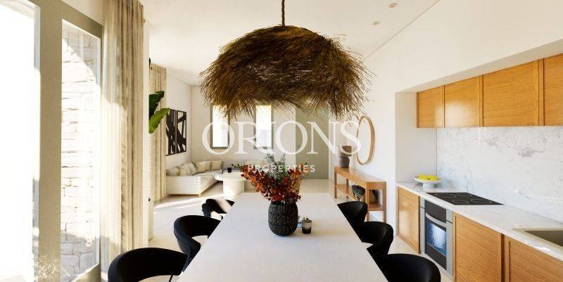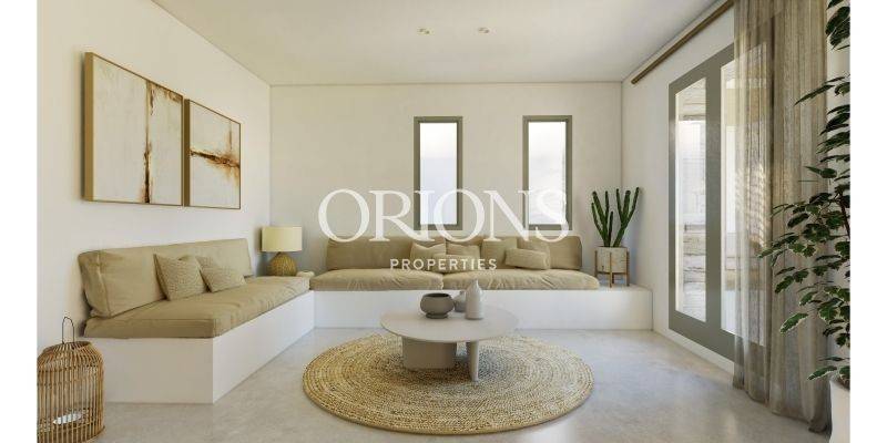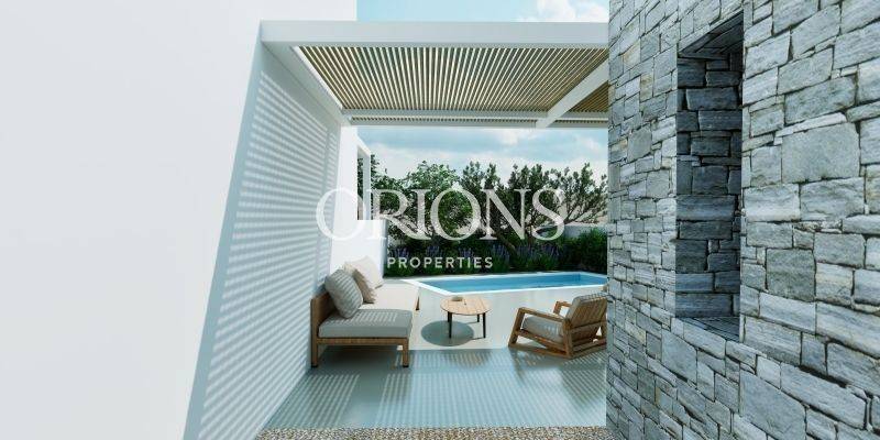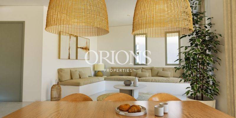 In the center of Agkairia, just beside the small square of the Church of Agios Georgios, a new residence is currently under construction as part of a small complex of four homes. The location offers a wonderful balance between village life and easy access to the sea. Within five minutes you can reach the sandy beaches of Alyki and Farangas, while the house itself enjoys open views of the sea already from the ground floor.