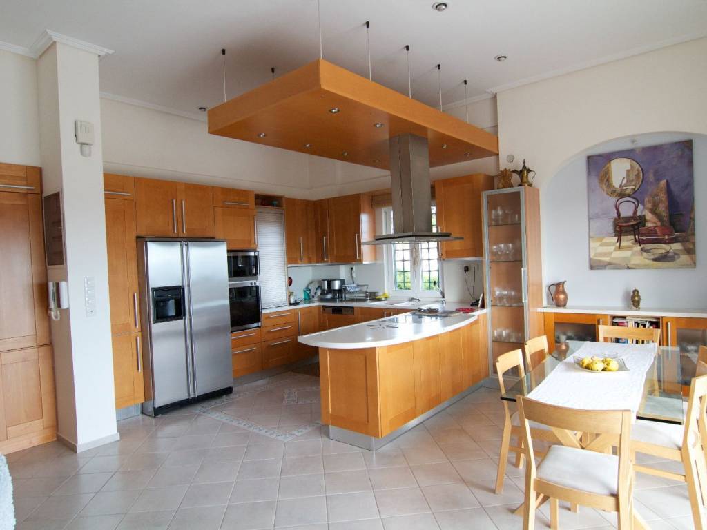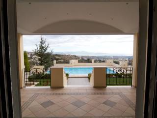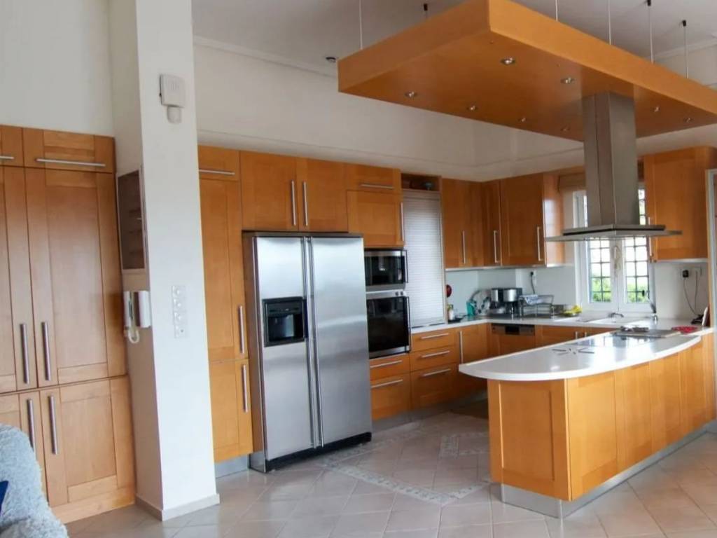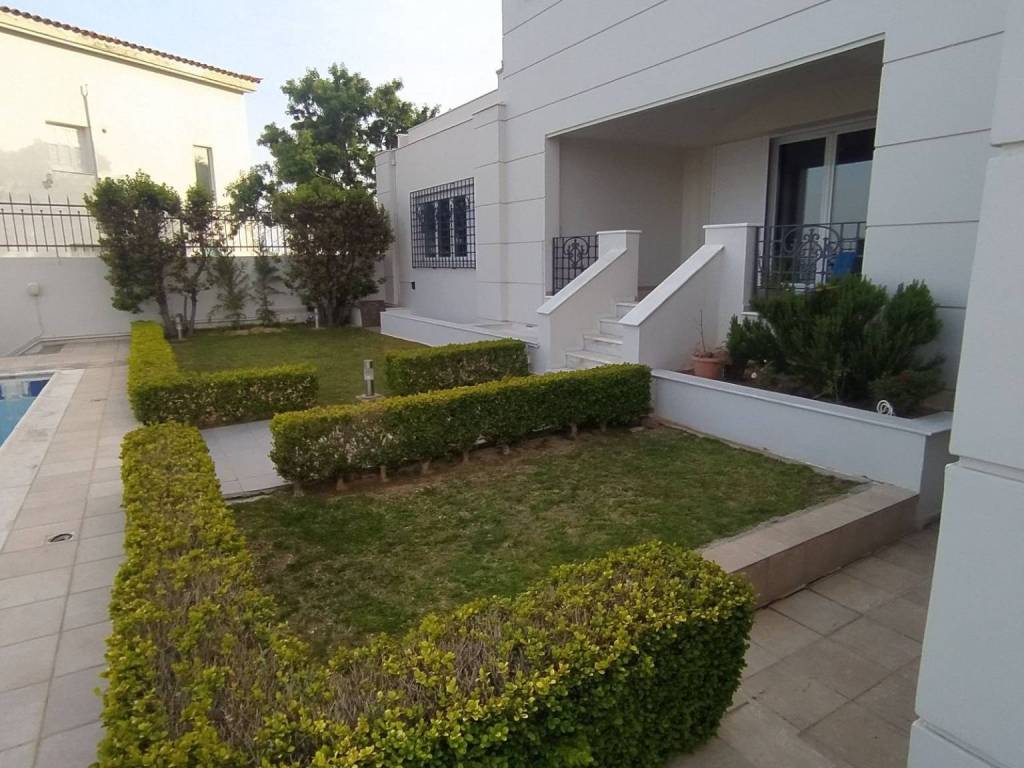 A luxurious, impressive single-family home in a prime and unique location in the area, offering unobstructed panoramic views. The property comprises a 285 sq.m. duplex on two levels, a separate 72 sq.m. loft, and a standalone 215 sq.m. apartment on the garden and pool level. On the ground floor is the main entrance to the maisonette, featuring impressive, bright spaces and a reception area with a fireplace, a dining room, and a separate kitchen with a fireplace. On the level with the 3 bedrooms, one is a master bedroom, and the other two share a bathroom. The separate loft features its own living area, kitchen, and bathroom. Additionally, there is a separate, impressive apartment with spacious, elegant rooms, living rooms, a dining area, a kitchen, 3 bedrooms, and 2 bathrooms. There is also a basement storage area and playroom with pre-installation for a sauna and hot tub. Top-quality materials, handcrafted finishes, and impressive windows. Translated with DeepL.com (free version)