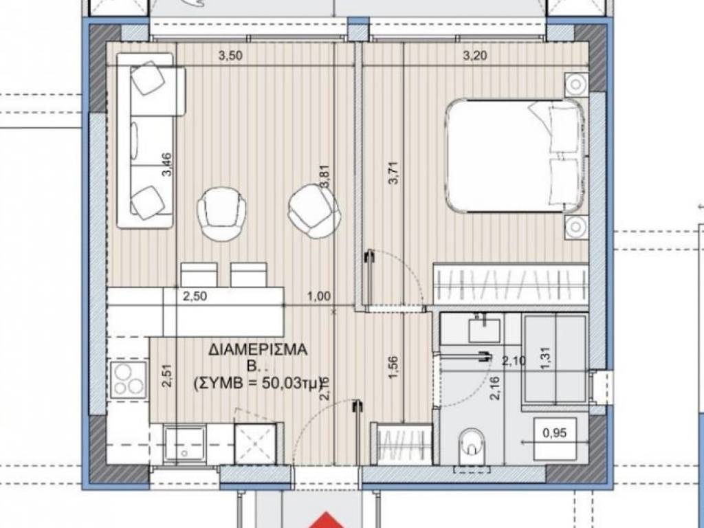 Property Code: 1-277 - Apartment FOR SALE in Vrilissia Center for € 250.000 . This 50.00 sq. m. Apartment is on the 2 nd floor and features 1 Bedroom, an open-plan kitchen/living room, bathroom . The property also boasts Heating system: Underfloor Heating - Heat pump, tiled floor, Window frames: Aluminum - Sliding, Armourplated door, elevator, parking, a storage unit 8 sq.m. sqm, pre-installation for A/C, pre-installation for alarm system, insect screens, double-glazed windows, solar-powered water heater, satellite dish, intercom TV, optical fiber. The building was constructed in 2026 . Building Energy Rating: A+