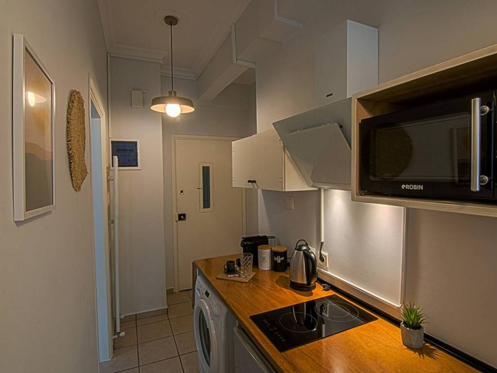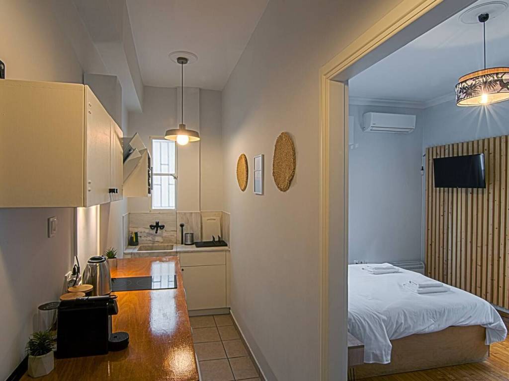 Available from April 20, 2026. Flexible short-term rental options available — utilities included — at a negotiable price. 129 Mavromichali Street. Elegant and renovated, fully equipped studio apartment. Very bright. Separate kitchen. Located in a pleasant and quiet area. Close to shops and public transportation.