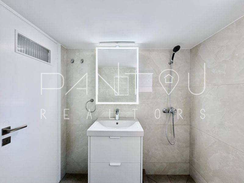 New electrical installation with modern panel and Legrand switches, new plumbing from meters throughout the network, energy-efficient thermally broken frames with double glazing, new security door, and complete renewal of kitchen and bathroom from scratch.The kitchen was redesigned with granite-tiled floor, new Pitsos equipment (oven and hobs), Pyramis extractor hood and provision for 45 cm dishwasher.