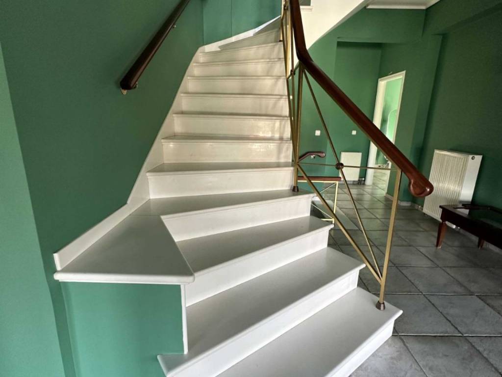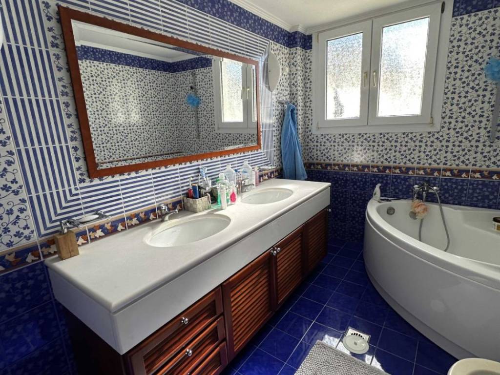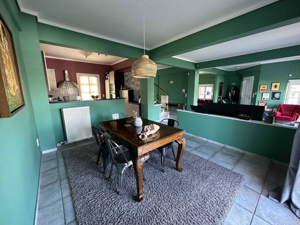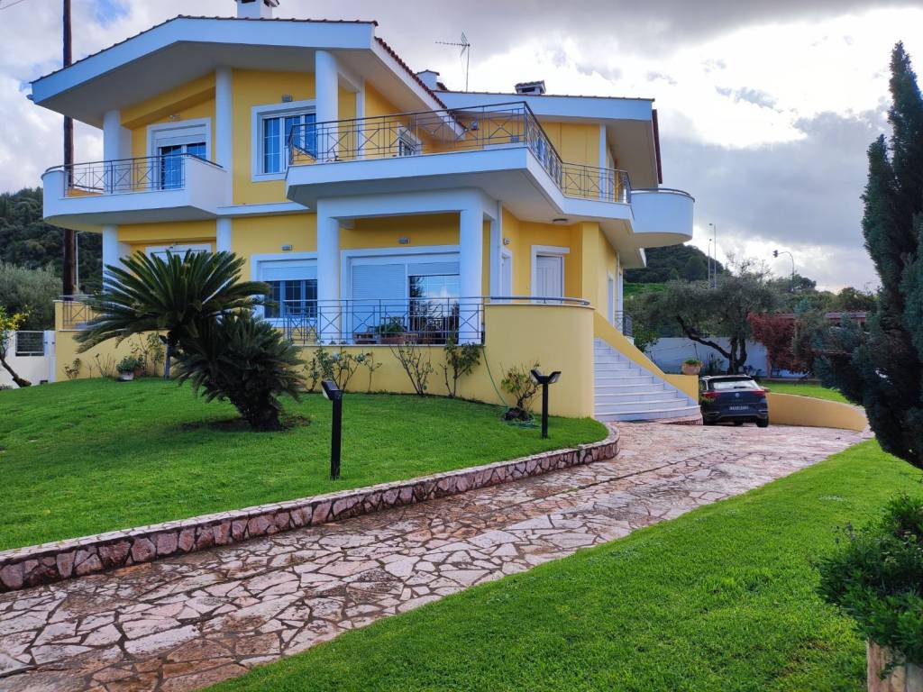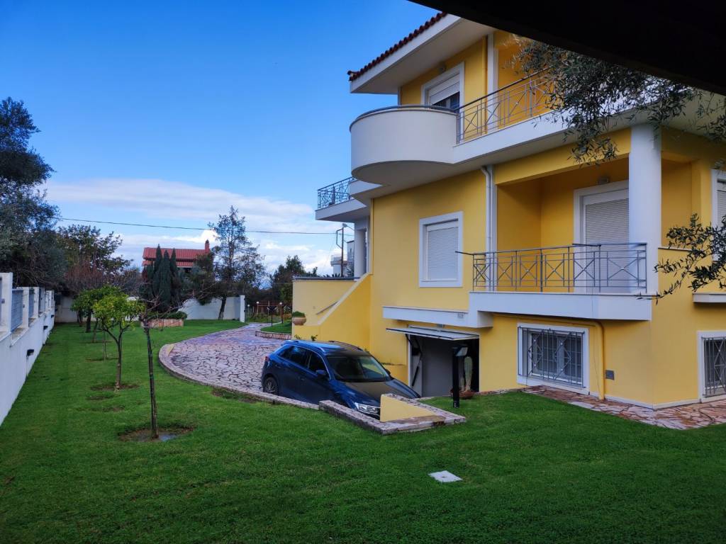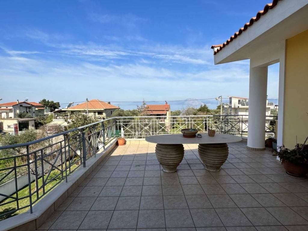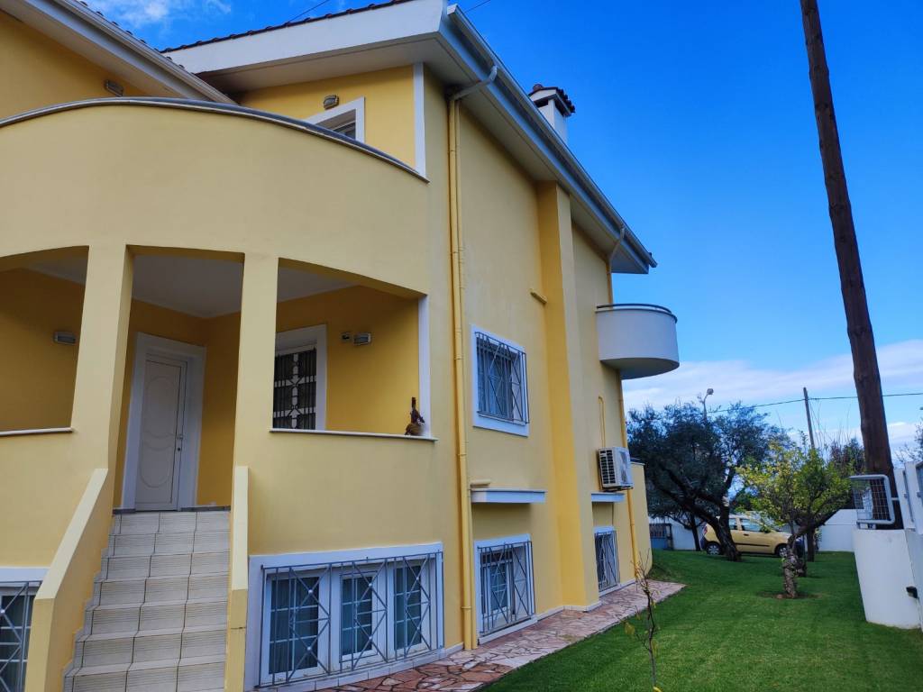 Maisonette built in 1997, consisting of 3 levels totaling 380 sq m. Semi-basement divided by garage/storage and living room with fireplace and dining room 153 sq m. Ground floor 127 sq m with kitchen, dining room, living room with fireplace, bedroom and bathroom. First floor with 3 bedrooms, 2 bathrooms and dressing room. The master bedroom has a dressing room, fireplace and its own bathroom. Terrace with sea view and distance of the house from the sea 150 meters. The house is located on a plot of 1000 sq m with various fruit trees, basketball court and has easy access to the Patras Pyrgos P.E.O.