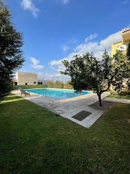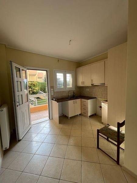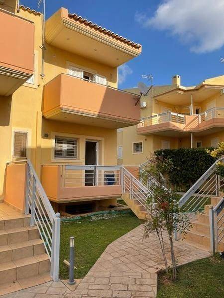 Markopoulo Mesogeas, Centre - Maisonette 133sqm bedrooms 3, master bedroom, levels 3, semi-basement - 1st - raised ground floor, excellent condition, year built 2005, energy class C, living room, hall, kitchen, 4 bathrooms, heating type: autonomous (oil), parking covered, quiet, dual aspect apartment, luminous, unobstructed view view, frontage, storage space, solar heater, fireplace, balconies, large balconies, garden, aluminum frames, double glazed windows, door screen, wood & tile floors, secure door, swimming pool, internal staircase, pets allowed, within city plan, residential zone, eastern orientation, access from asphalt.