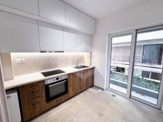 Nea Smyrni, Centre - Apartment 55sqm electrical appliances furnished, bedroom, levels 1, 1st (55sqm, 1 bedrooms, living room, dinning room, kitchen, bathroom), fully renovated, year built 1977, renovation year 2026, energy class C, living room, hall, kitchen, bathroom, heating type: central (natural gas), air condition, quiet, dual aspect apartment, luminous, unobstructed view view, frontage, painted, electric roller shutters, balconies, tents, elevator, built in appliances, aluminum frames, double glazed windows, door screen, wood & tile floors, secure door, video doorbell, luxurious, within city plan, residential zone, western orientation, access from asphalt, special offer, close to bus stop (up to 100m), close to entertainment (up to 100m), close to market (up to 100m), close to school (up to 100m), close to park (up to 100m), close to square (up to 100m), close to super market (up to 100m), close to banks (up to 100m), close to tram station (up to 100m), close to sports facilities (up to 100m).